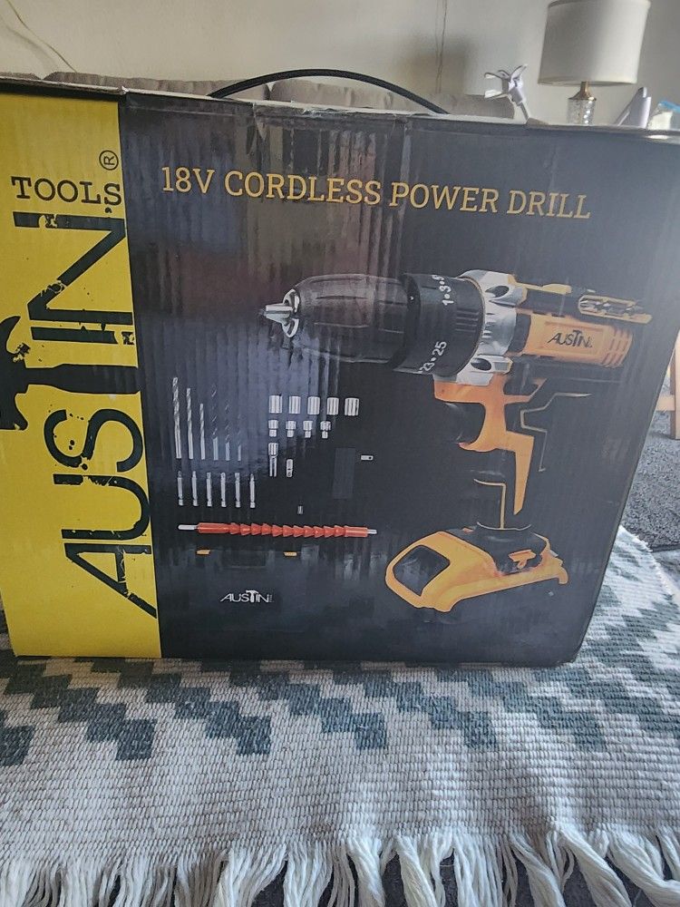 18V Cordless Power Drill by Austin Tools includes battery n socket pieces See details on box