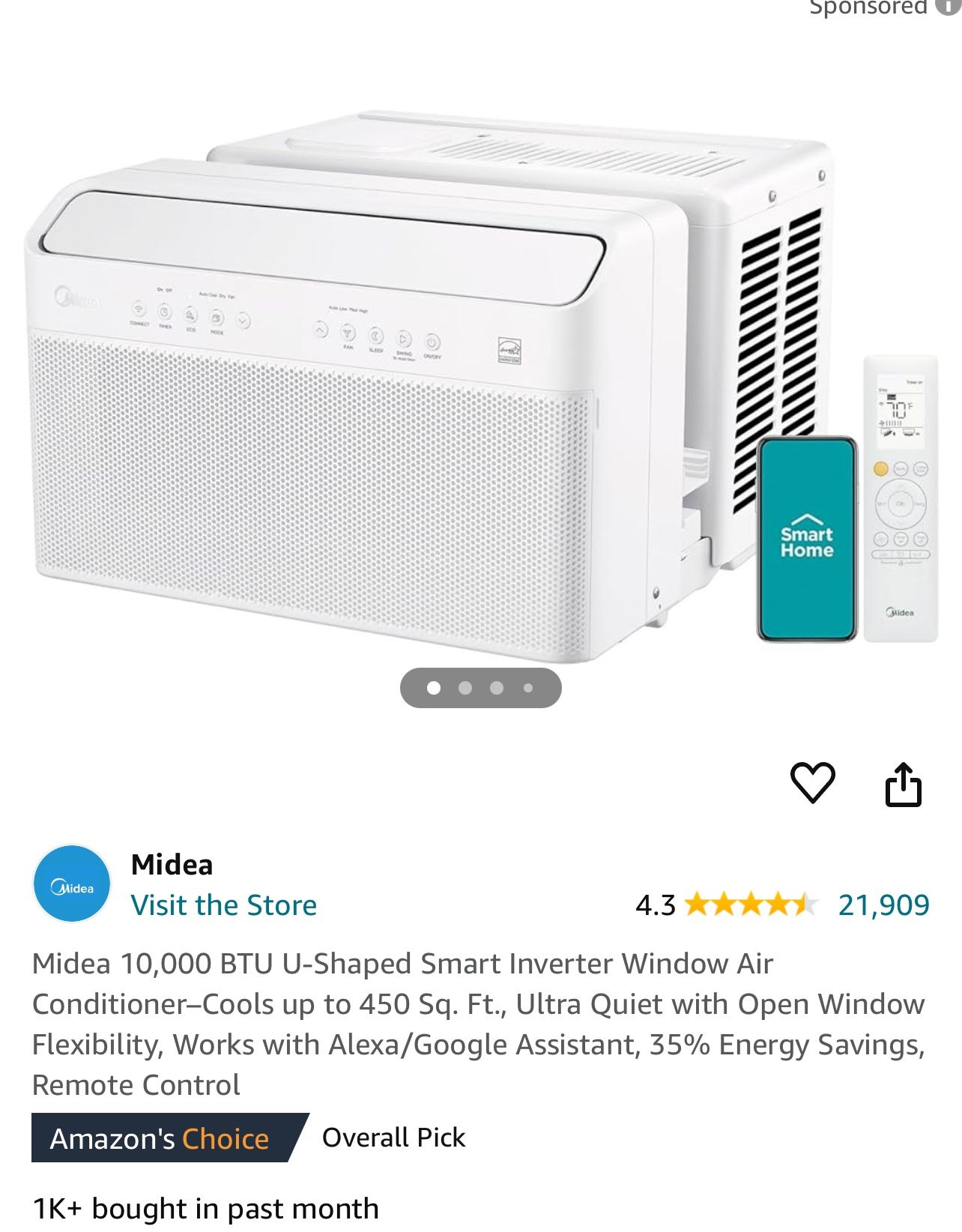 Very well maintained window AC unit. 10K BTU comes with mounting brackets. Local pick-up only. Works with SIRI, Alexa, Google Home,. App controlled and WIFI enabled.