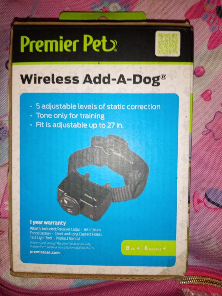Adds an additional Dog to your wireless Dog Fence . 5 adjustable levels of static correction. Tone only for training. Low battery indicator. Waterproof. For Dogs 8lbs and up and 6mos old and up. Fit is adjustable up to 27". Included in Box - Receiver Collar, 6V Lithium Fence battery, short and long contact points, test light tool, and Product manual. Works with Premier pet Wireless fence system ( GAC11-16351) brand new in original factory packaging never opened. ALSO adding 3 packs of 2 6V Lithium Fence battery new