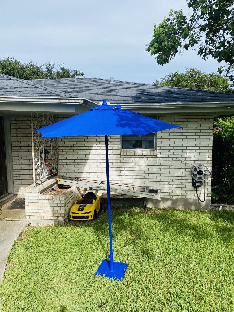 Only opened to take pictures very beautiful blue color asking $100 for the umbrella and stand