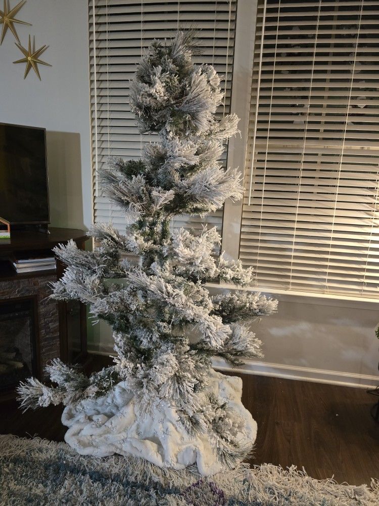 Fraser Hill Farm 6.5 ft Snow Flocked Christmas Tree. Bought recently, however cannot use at home since we discovered that the snow flocks may be poisonous for my little puppy. :-( NEW IN BOX. Cannot return.. Original Product Link : https://offerup.com/redirect/?o=aHR0cHM6Ly9mcmFzZXJoaWxsZmFybS5jb20vcHJvZHVjdC9GUkFTRVIvRkZTTjA2NS0wU04=