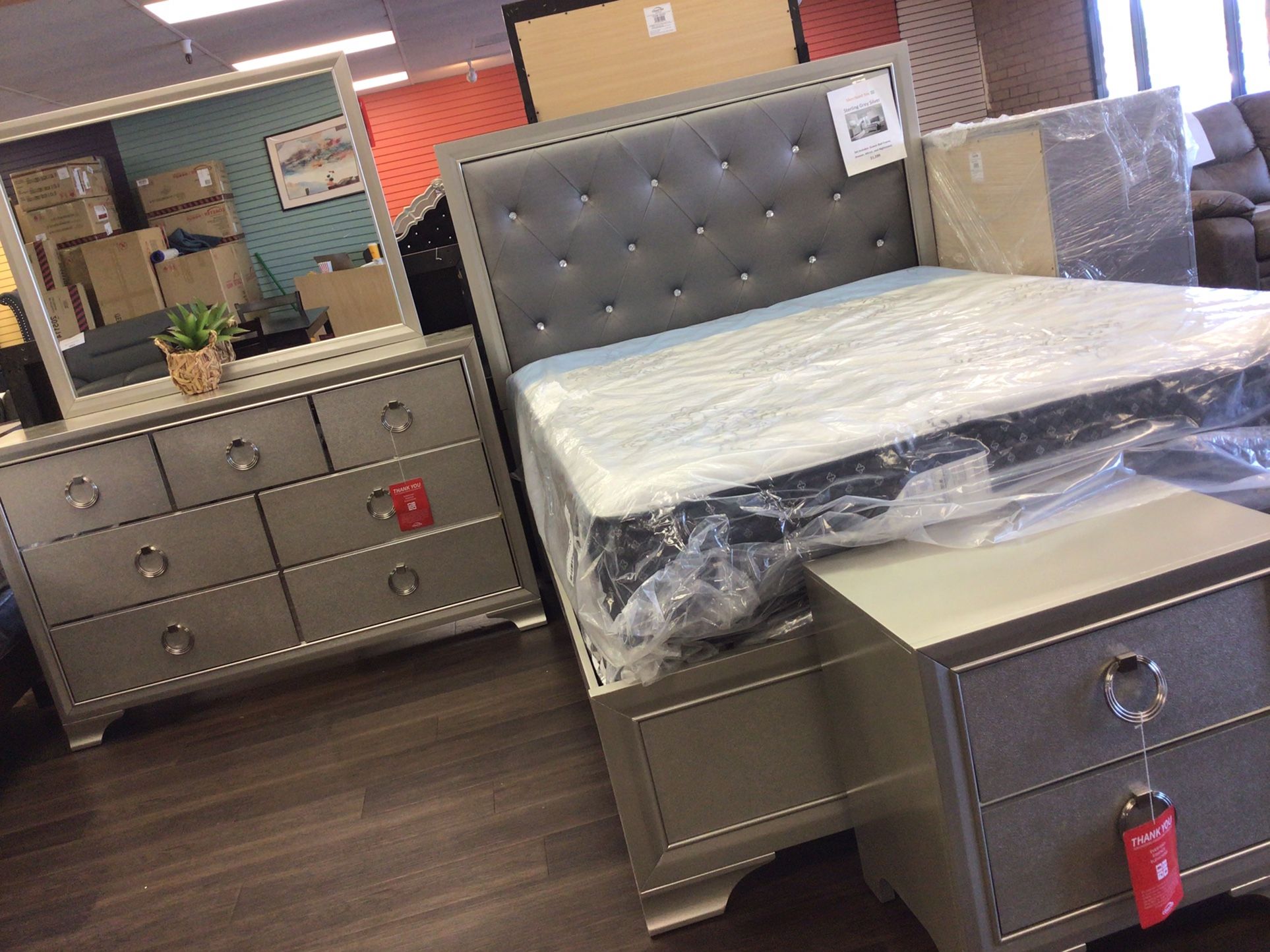 Set includes: Queen Bed Frame, Dresser, Mirror, and Nightstand.