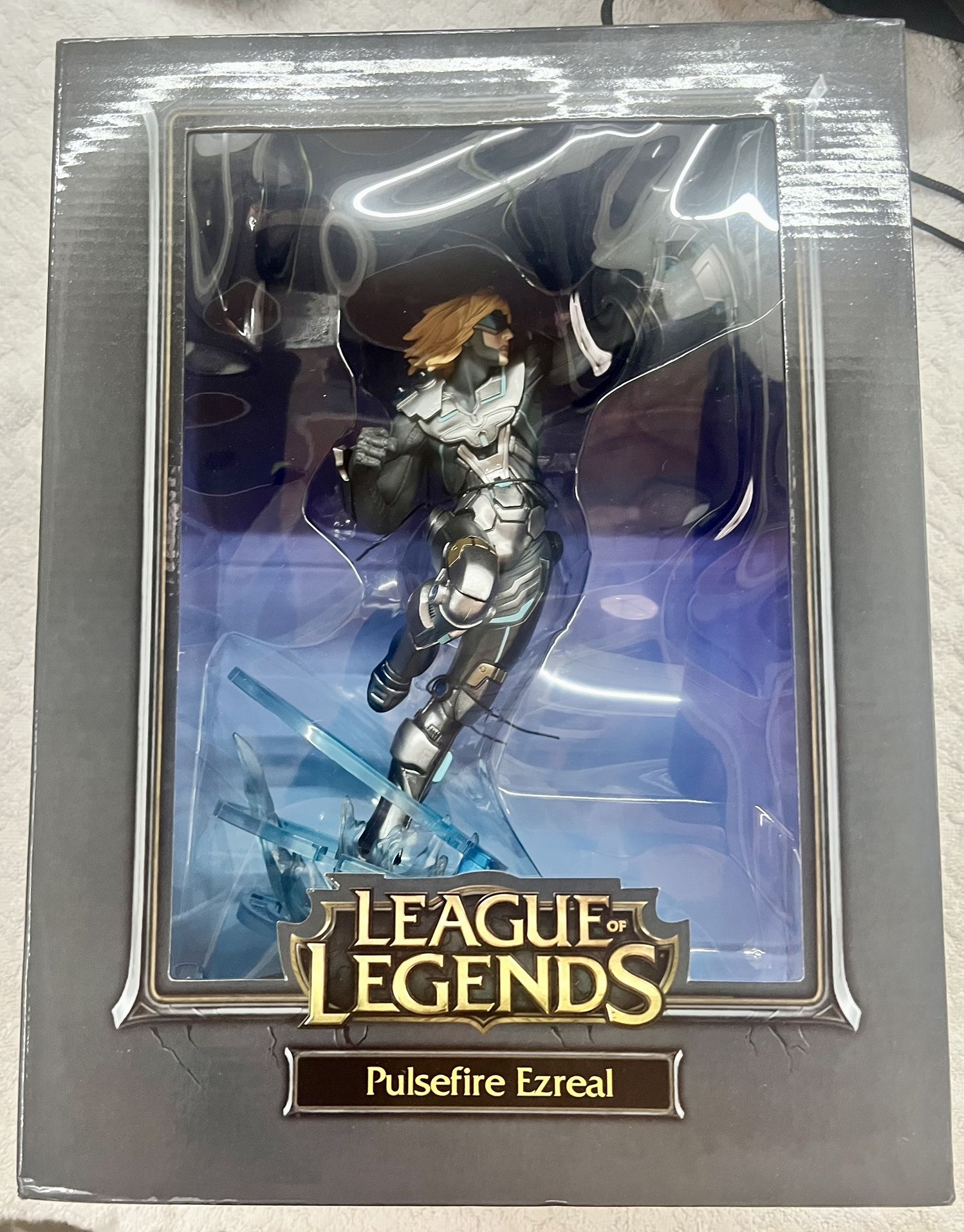 The product is a brand new in box collectible figure of Pulsefire Ezreal from Riot Games, featuring the character in the League of Legends theme. Manufactured in 2013, this figure is part of the League of Legends franchise and showcases the design of the popular animated character. Perfect for fans of the game or collectors of animation merchandise, this item would make a unique addition to any collection of memorabilia from the 2010-2019 time period. box size: 13" x 10" x 7" Box in good condition. Slight damage noted on back top...see pics.