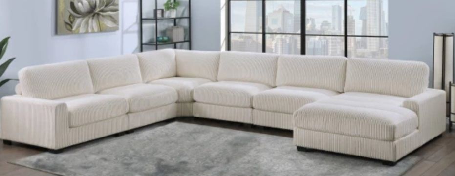 Onlinefurniturebroker.com βπ« We do not have a showroom. We deliver directly from the manufacturer to your home π . π Delivery is only $40 π οΈ Assembly is an extra charge. Price on assembly depends on which item you order! π΅ We accept cash on delivery Mattresses are sold separately π₯We are voted #1 on offer up, please also view other options on our page!!! Beds, bedroom sets, sectional, sofas, daybed, futon, vanity, dining set, chairs, recliner, Loveseat, dresser, queen bed, king bed, desk, kitchen cabinets, shaker cabinet, beige sectional, beige sofa 158 Dimensions Overall: 164" x 127" x 36"H; LAF Chair: 45"x40"x36"H; Armless Chair:37"x40"x36"H; Corner Wedge:45"x45"x36"H;RAF Chaise:45"x67"x36"H Material Color: Beige; Material: Wide-Welt Corduroy