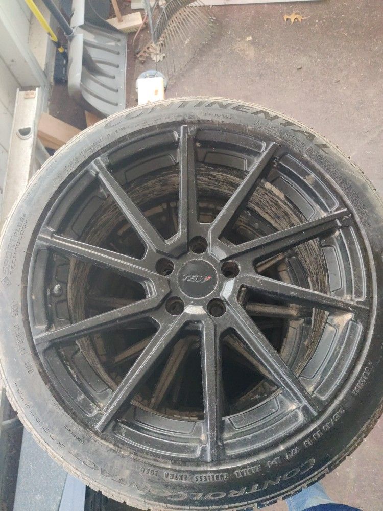 Nice set of TSW Watkins 18" wheels I had on my Focus for a year or so. Ended up just not wanting to mess with two sets of wheels so I'm selling these and keeping the stock ones. Tires are good, two have the snowflake visible in the tread and two only have the rain and sun visible. These are wider than stock but yet did not feel any heavier when driving. Highly recommend. They are a little bit dirty and could use a good wash, otherwise great condition. Bolt pattern 5x108.