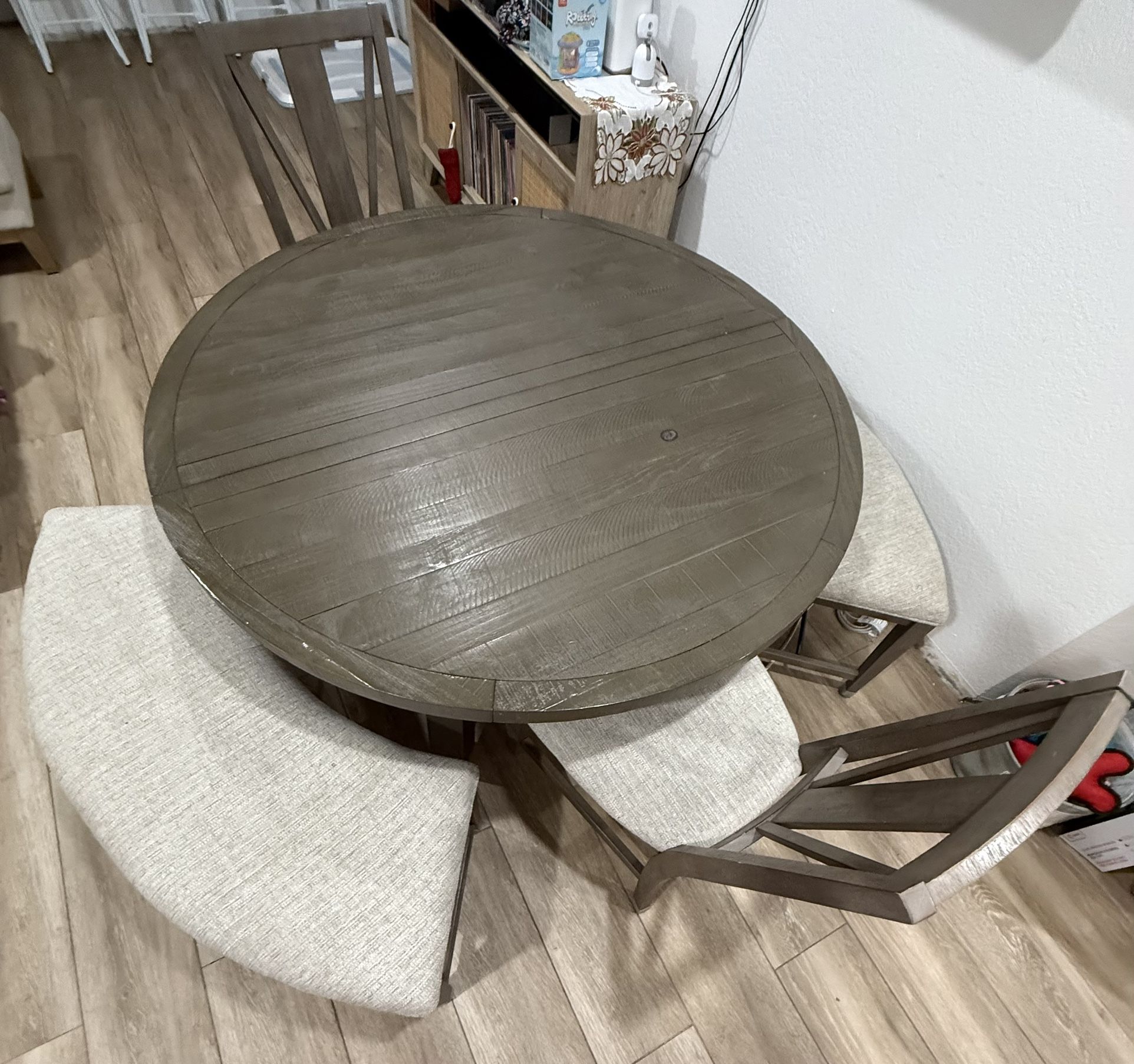 Dining room set from City Furniture, good condition, maybe 3-4 years old. Doesn’t fit our space anymore, great family table comes with an expansion slab to seat 6-8 people. This set was over $2,000 when we bought it asking for $600 or best offer.