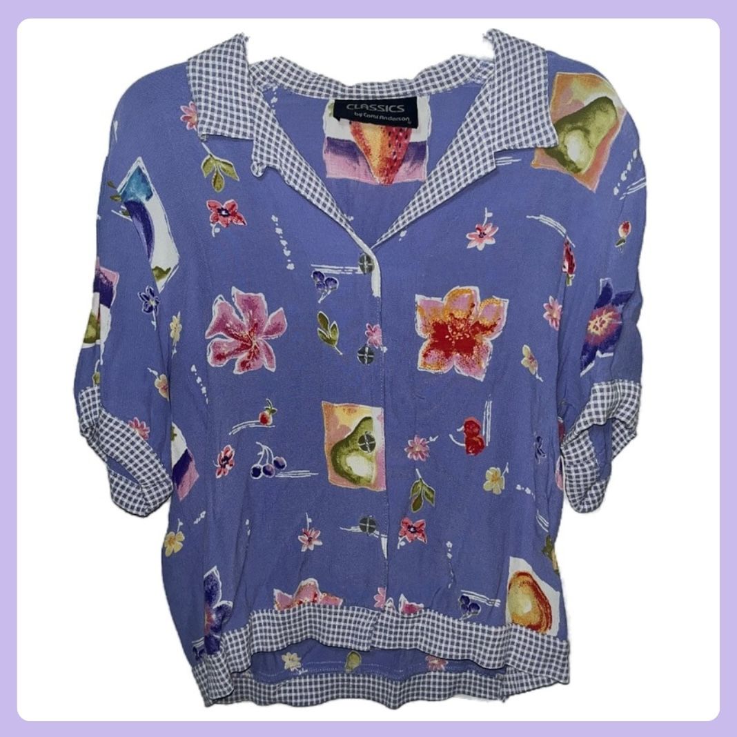Vintage Purple Fruit Floral Button Up Blouse