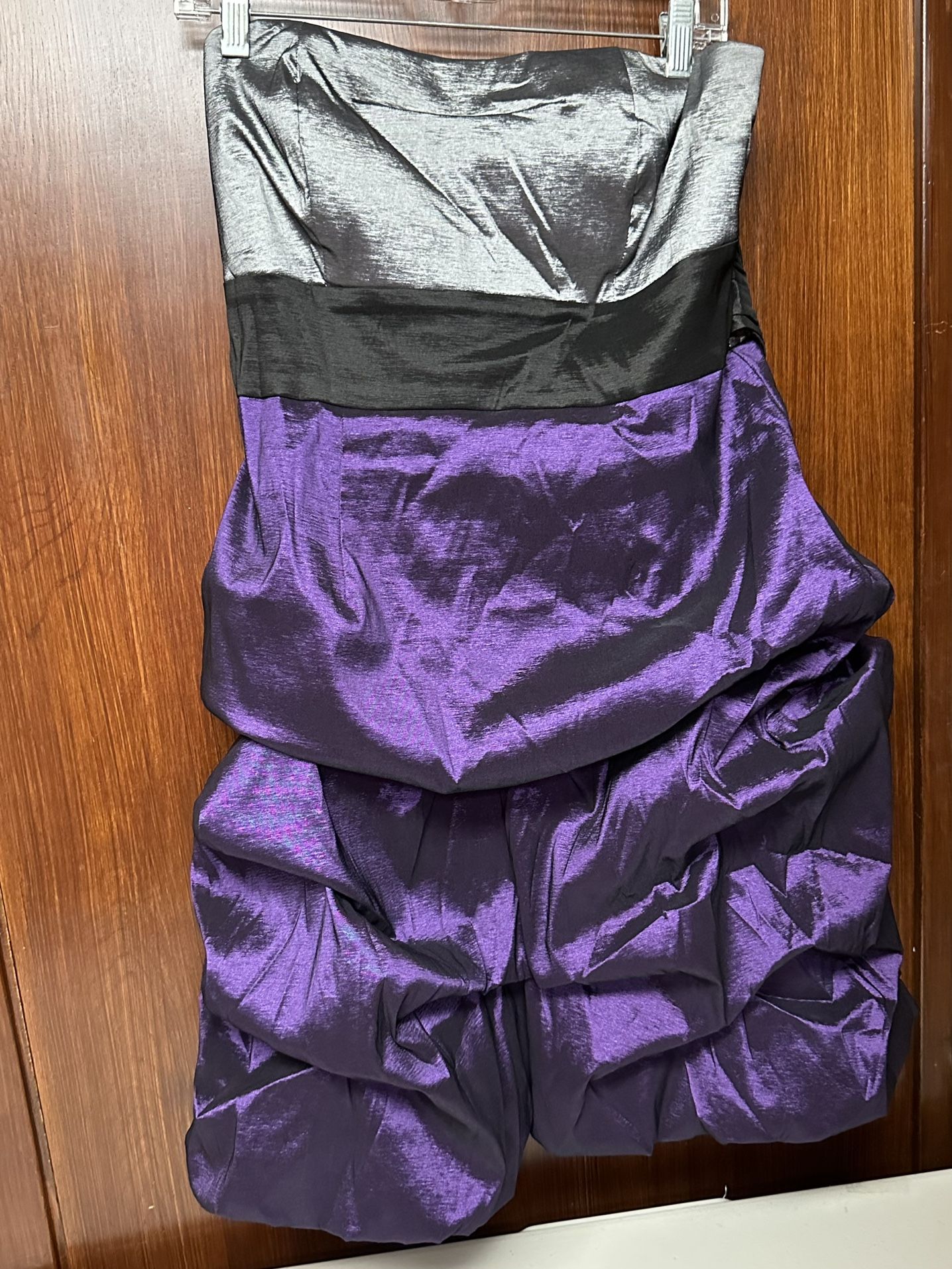 Midi Dress Silver and Purple Strapless Ruched size 14