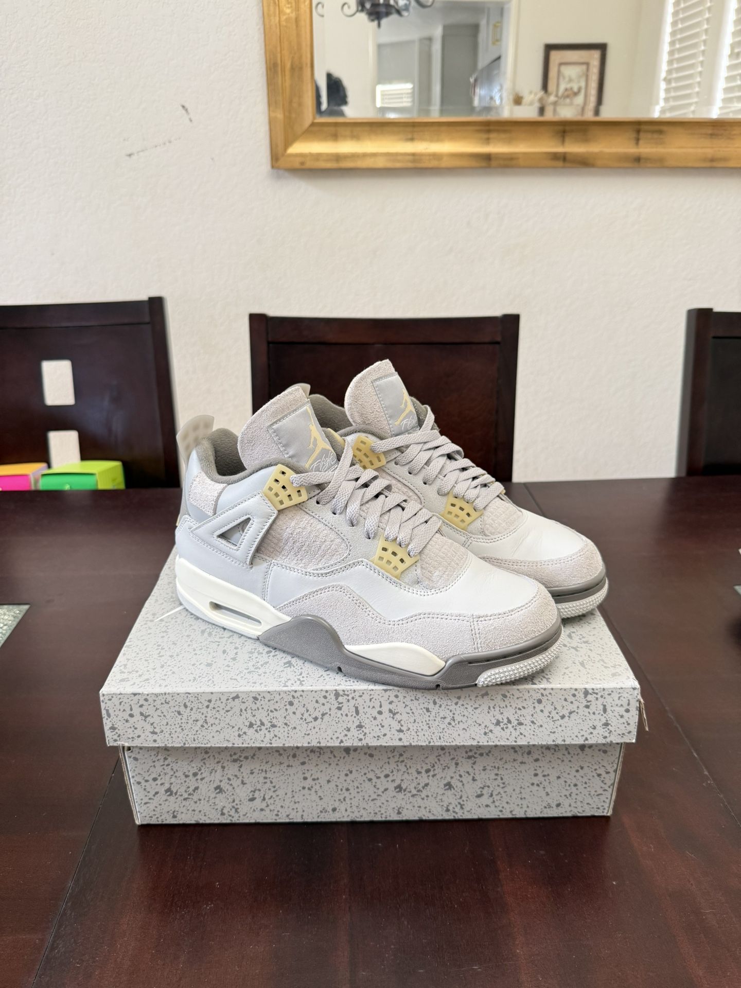 Size 9, Used 1x once only Jordan 4 Photon Dust Open to hearing offers, no low ballers Little crease on toe area, no star loss Authentic Have receipt for proof of purchase! Serious buyers only