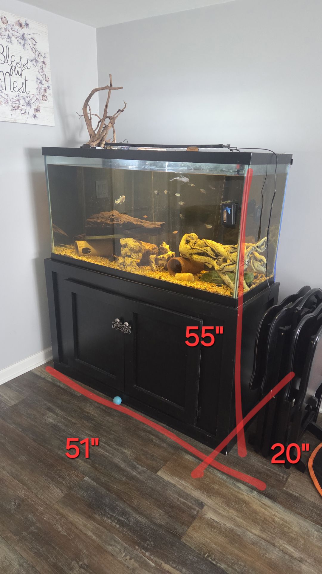90 gallon over flow Stand Sump Heater Aerator Drift wood, Caves, decor. 14 community tetras 2 Synodontis multipunctatus 1 spotted vampire pleco $600 TAKE IT ALL ( help with delivery) -LOCAL-