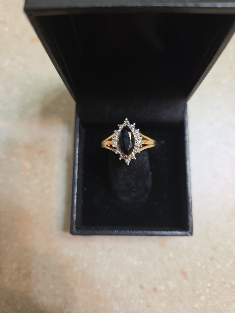 14 k gold gemstone and diamonds ring. Weight is 3.4 grams. Size 8