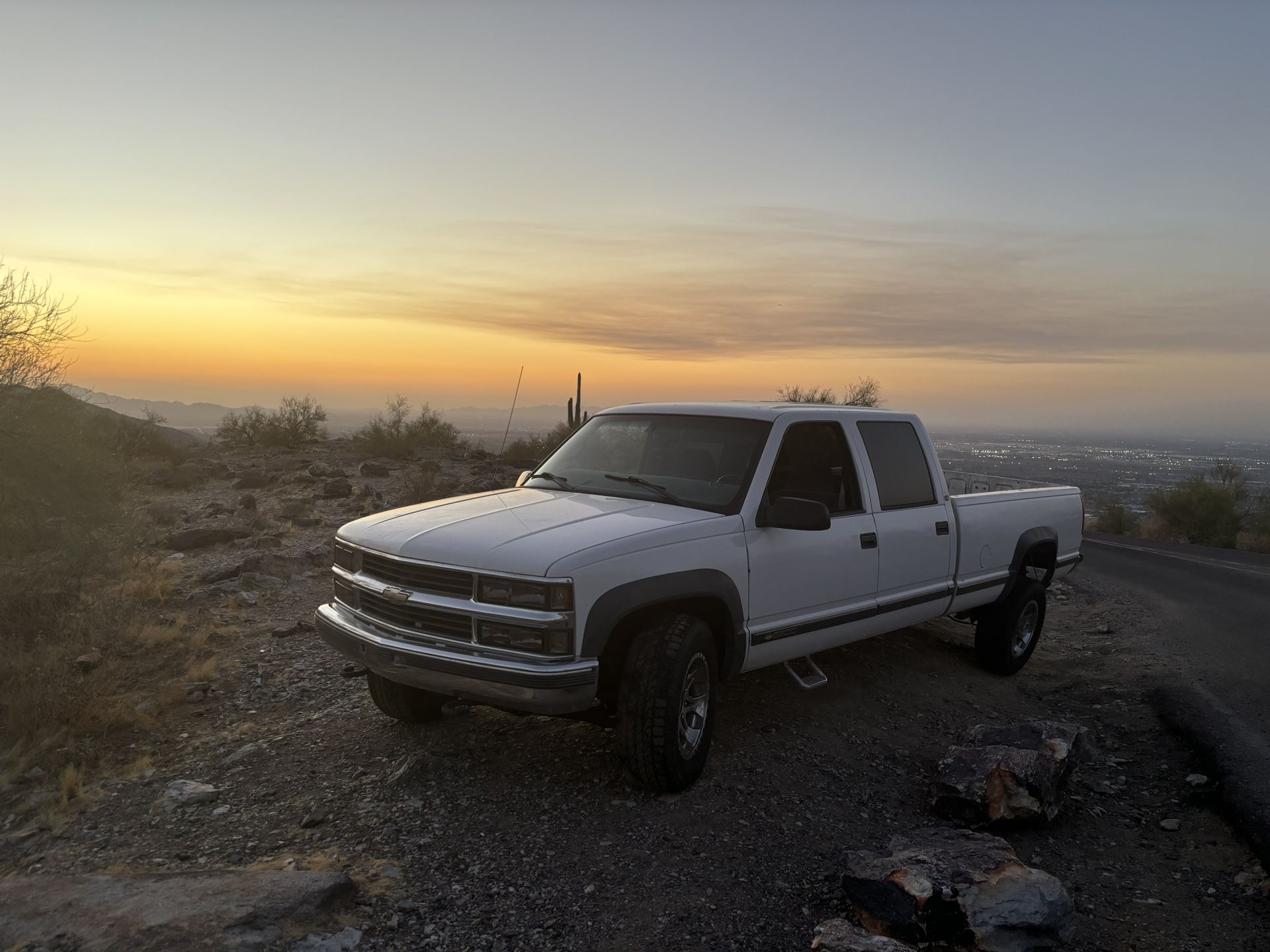 This is a 4 wheel drive automatic 3500 with a 8 foot bed and a crew cab. This is a very difficult truck to find since it is the last year of the 8 foot long bed and is very rare to see with a crew cab and a 4 wheel drive transmission. The truck is in excellent condition interior and exterior.i have kept up with regular maintenance and the water pump, spark plugs, power steering pump, and all the filters and fluid were recently changed. Unfortunately the reason for the low price is that the transmission does slip when you are accelerating in overdrive. Make me an offer, I am not open to trades.