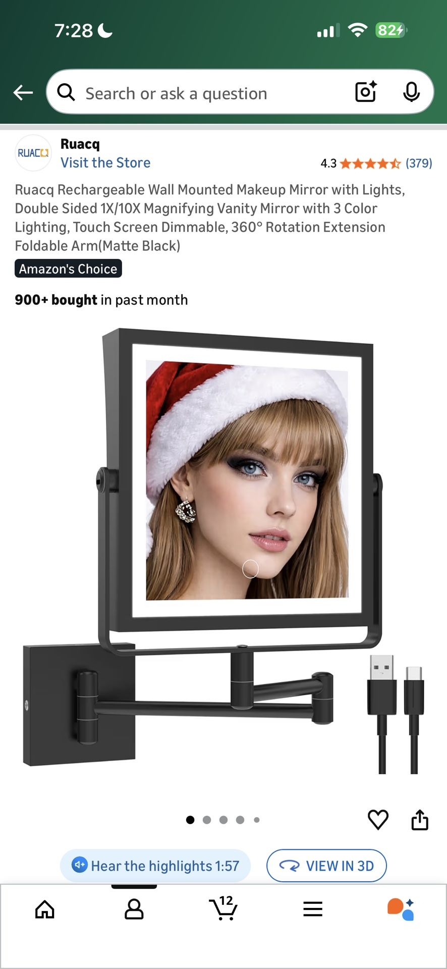 Ruack Rechargeable Wall Mountain Make Up Mirror With Lights