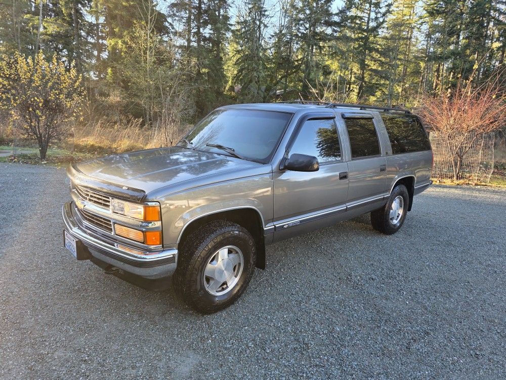 1999 Chevy Suburban 1500 4x4 very good condition 204k mostly highway miles second owner always stored indoors or carport since new It will be hard to find one in better condition All seals, glass,and trim in great condition Interior in very good condition, a little wear on driver's seat, but no rips, none of that, never been smoked or no pets All door locks windows windshield wipers everything on the truck works I have ski rack or snowboard rack with locking mechanisms that go with it Paint in good condition Weather tech floor mats Tires 50% or more Window visors hood visors Bilstin shocks all around full tint window and windshield 40 gal fuel tank 520-550 range and it's full Only reason for selling is I bought a big truck and I can't see holding on to multiple cars. Also my wife has a tahoe, so I don't really need it. New front brakes I'm sure there's tons of other stuff. I've done to it. I just can't think of it off the top of hand. Just did mobile 1 (20k oil and filter) less than 10 miles on it All fluids have been religiously changed. All drivetrain has been professionally changed at eds transmission in marysville Engine light is on cause a 02 sensor i can show you on my scanner that there's nothing else wrong with it runs and ideas perfect, and when it's really cold out, you have to cycle the key twice on the first start of the day and that's it. In the pictures I haven't cleaned the interior but it will be cleaned and leather conditioned before I sell it I've owned the suburban for a few years like I said the only reason for selling is cause I don't need to own multiple vehicles. I own six, so something has to go I'm o c d and very meticulous about my cars. As you can tell, it's very clean and well taken care of never abused adult driven, never burning out, or none of that stuff never off-road. All 4 wheel drive high and low works perfectly. The original owner was 85 years old he also was meticulous and never abused it. All original never an accident bone stock Clean title in my name If you have any questions, call and just ask