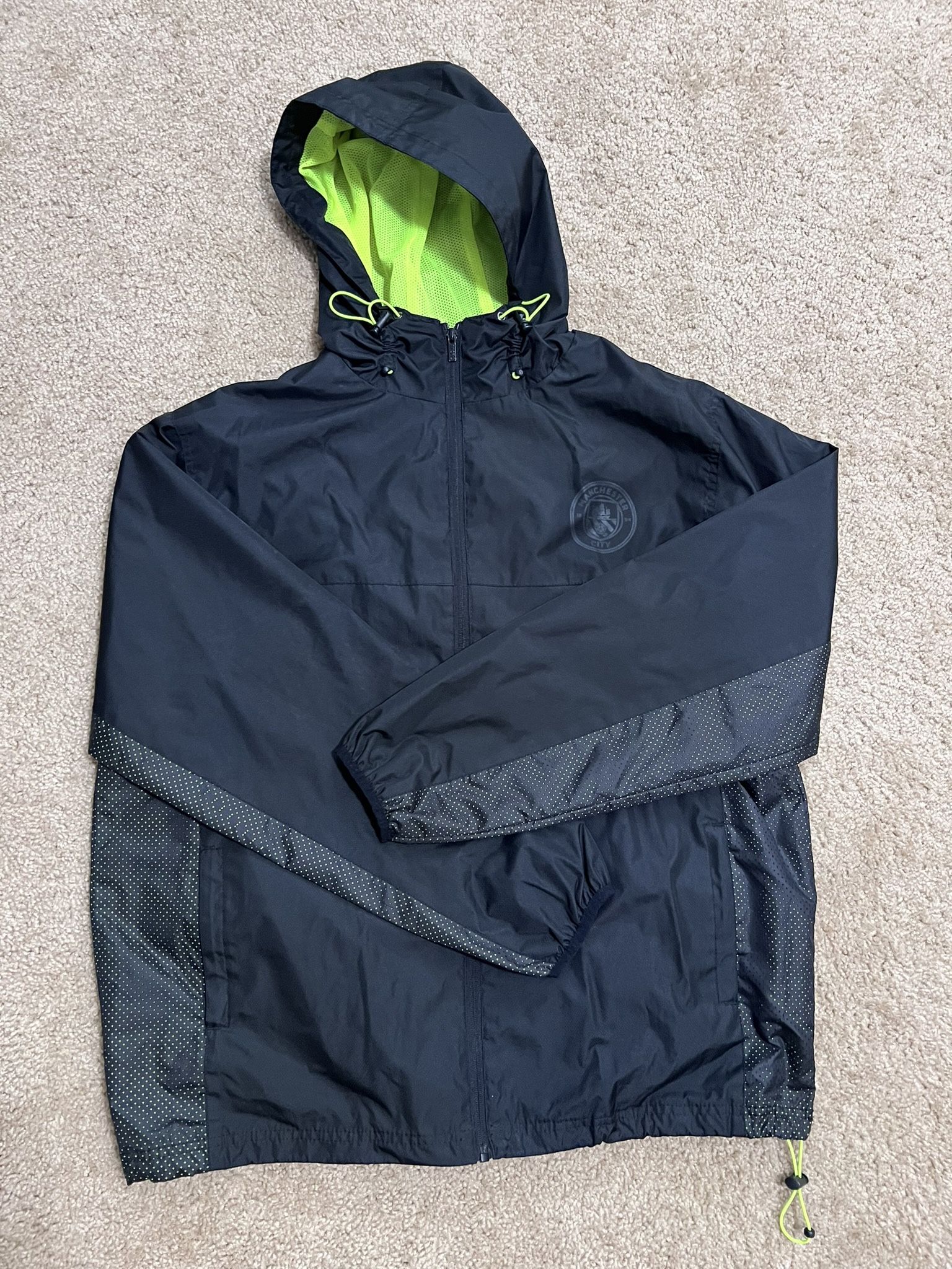 MANCHESTER CITY Official Sport SOCCER Full-Zip Jacket FUTBOL Coat / Men’s X-Large XL / Excellent Condition! / Black, Grey & Neon