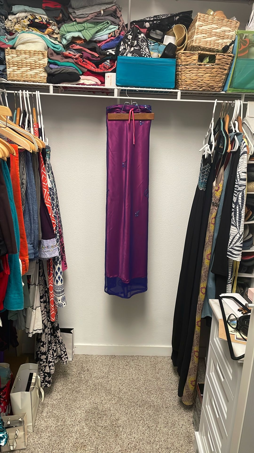Stetchy with pull string to tie at top. Unfolds (it’s folded on hanger) Fits most sizes S, M.