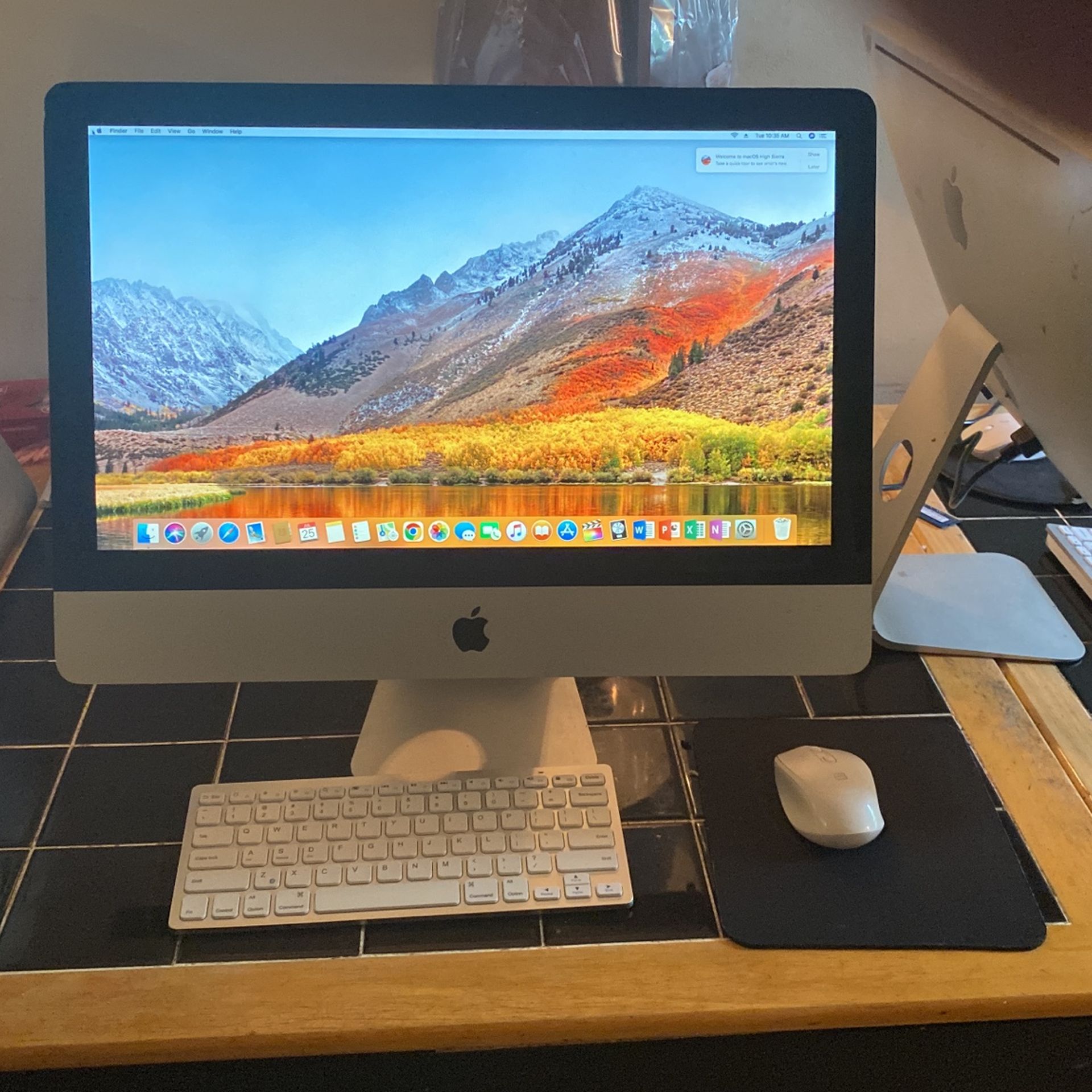 iMac 21.5 inches 2010 8gb Ram i3 500 hard drive high sierra O/S office 2016 logic pro x music software Final Cut editing software wireless mouse and keyboard and webcamb works I'm a Apple tech so it's all good