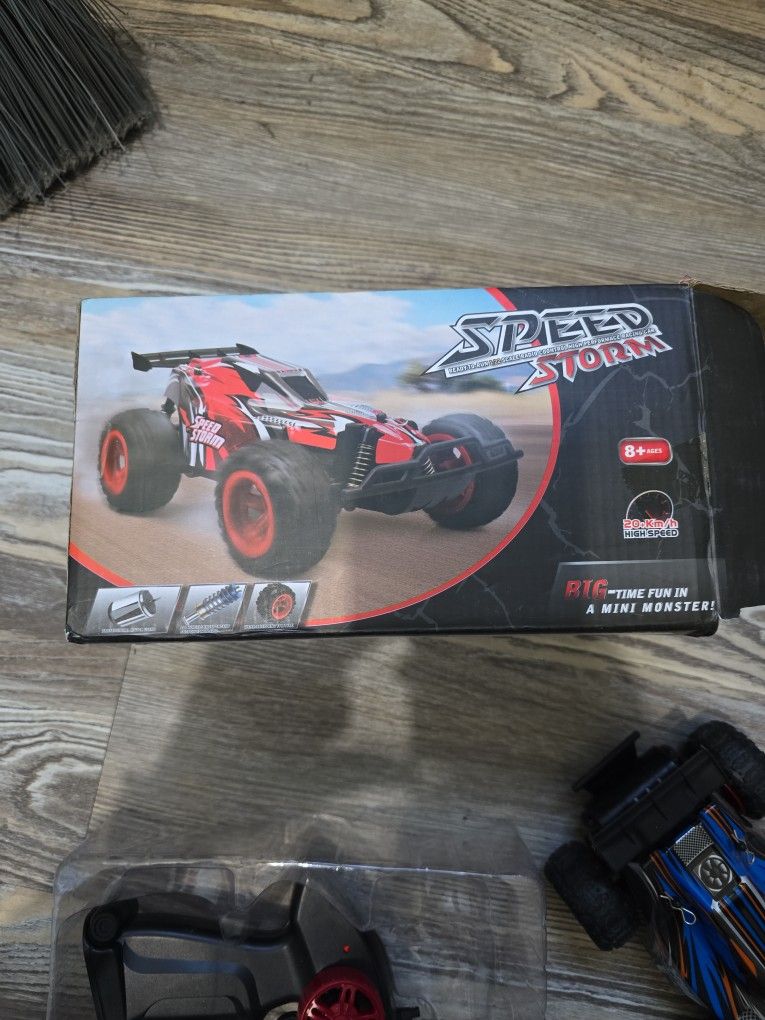 1/22 scale radio control racing car. It's missing the battery . My kid used it 2x n never got into it but it still worked before battery got lost