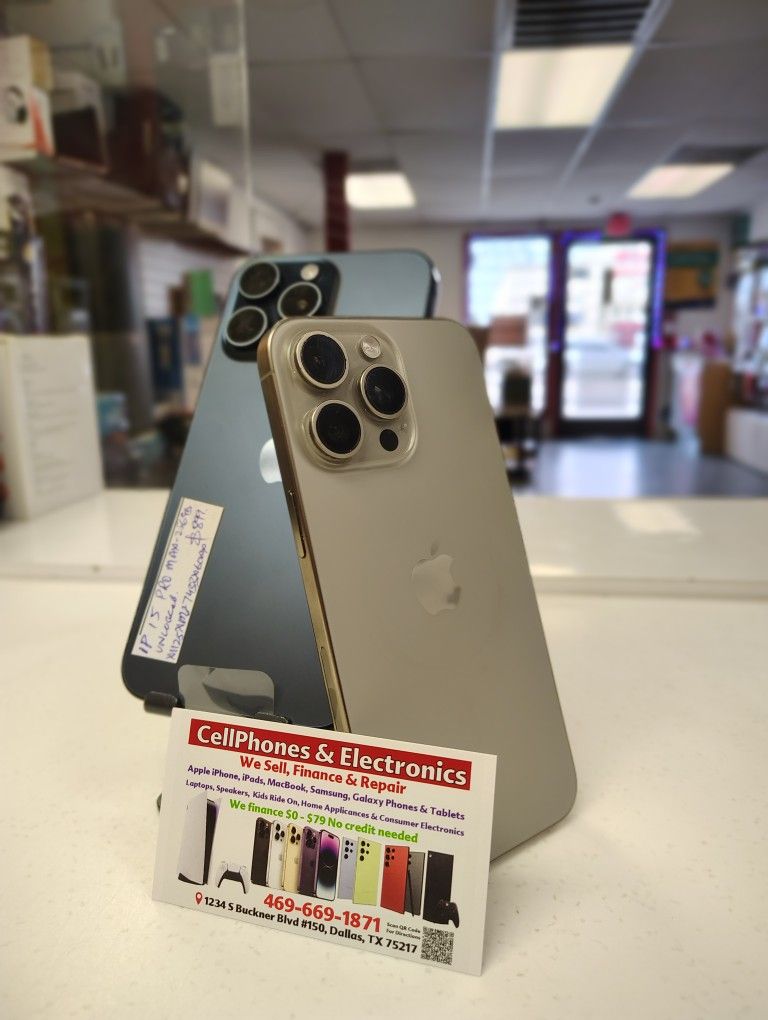 Pre Owned Apply online or in store (ask for online link) 1 Year Manufactures Warranty Factory Unlocked Excellent Working Condition Free Temp Glass or Clear Case on All iPhones Lifetime Blacklisted and IMEI Warranty on iPhones, Samsung, IPad's and Tablet's. No iCloud or Google Locked We have Limited Stock of PlayStation PS5, Xbox Series X & Series S, Nintendo Switch Mario Kart/Fortnite/Animal Crossing Bundles and Oculus Quset 2. All Accessories sold separately at additional cost. ***We Finance $0 to $50 Down Payment - No Credit Needed*** BAD OR NO CREDIT ALL ACCEPTED Easy-payments Decisions in minutes Take item home right away! Flexible payment options NO CREDIT NEEDED Three different options available Option 1: $0 down %0 interest for 6-12 months and low monthly payments Option 2: $0-$50 dow with %0 interest for 100 days Option 3: Low down payment with flexible payment options 90 days to 12 months payment option. Only $0-$50 is initial or down payment to take device home with you. Full price is based on which finance company approves you and depending on how long it will take you to pay back. ⚠️Requirements for in-store application⚠️ ✅ ID / Passport/ Mexican ID or Passport ✅ SSN or ITIN ✅ Bank account info ✅ Debit or credit card ⬇️⬇️⬇️⬇️⬇️⬇️⬇️⬇️⬇️ CELLPHONES & ELECTRONICS 1234 S Buckner Blvd, Suite 150, Dallas TX 75217 (We are behind PLS Check Cashing Building) 🕐 Mon-Sat 10:00am - 8:00pm 🕐 Sunday (By Appointment)