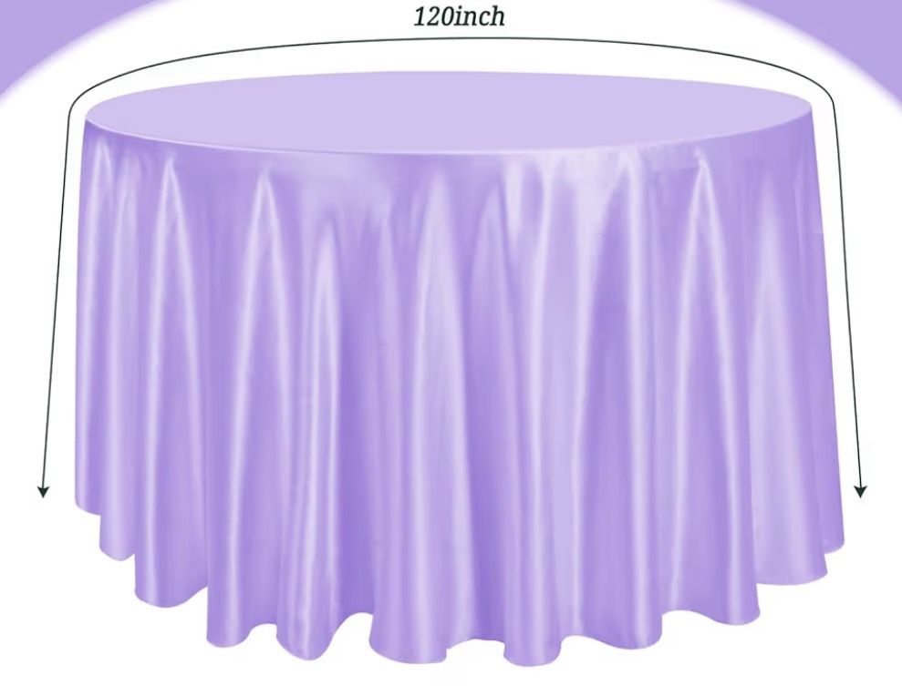 Satin Purple Table Cloth 120” Round 1 table cloth - $9 18 table cloths - $162