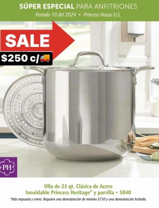 Acero inoxidable Con parilla de 25 qts. Disponible solo para levantar en Montcliar Ca