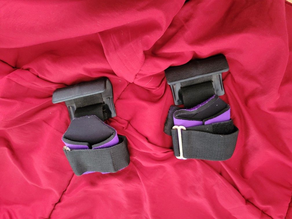 These Lifting hooks have Wrist straps that are adjustable and can adjust lifting hook. These are 1 Ton brand. Yes used, asking $20 OBO