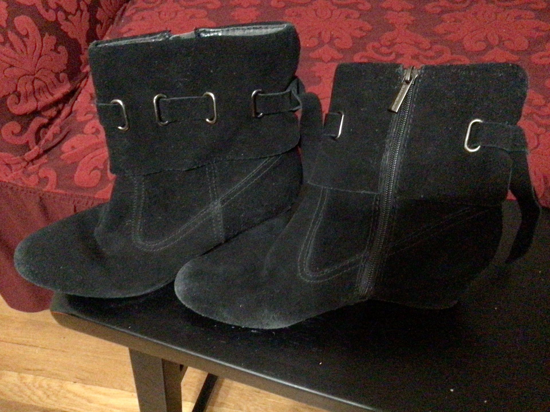 ANKLE HIGH BLACK SUEDE SILVER HARDWARE -SIZE 7.5 BOOTS