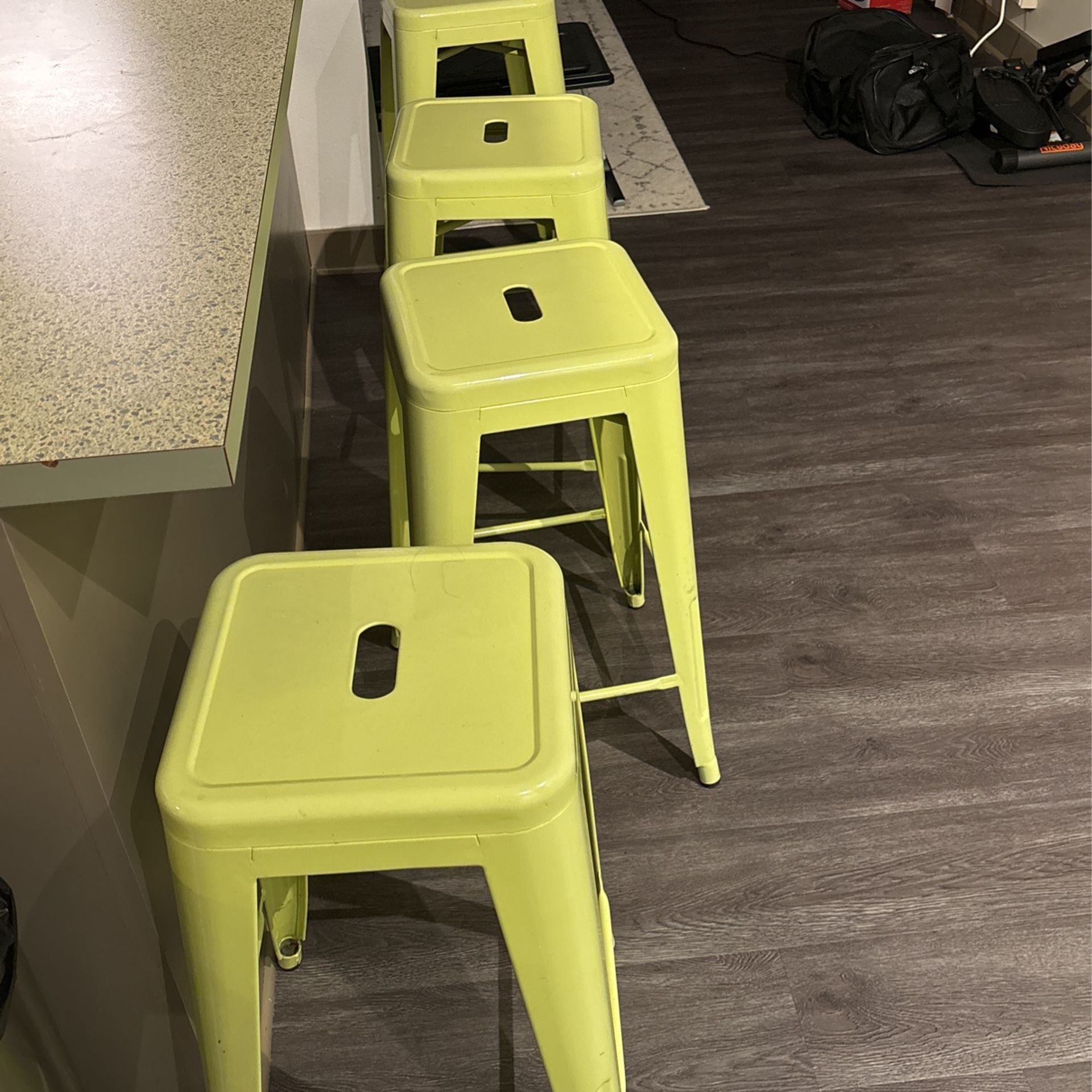 Set of 4 lime green counter height bar stools. Good condition. Metal stools. Height 2ftx2in Width: 1ft