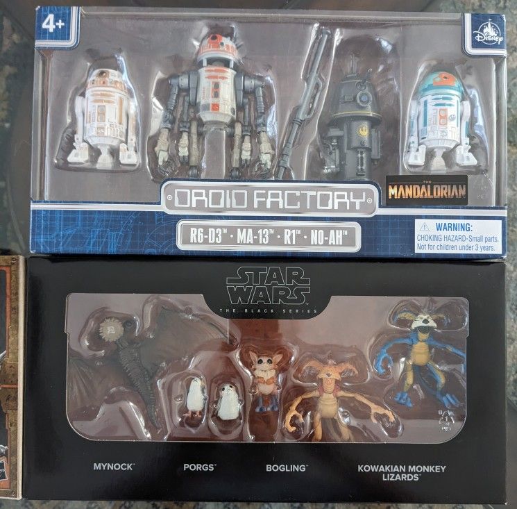 This set includes the creature pack and droids from the mandalorian tv series. Both are boxed fully sealed and never opened, in great condition!