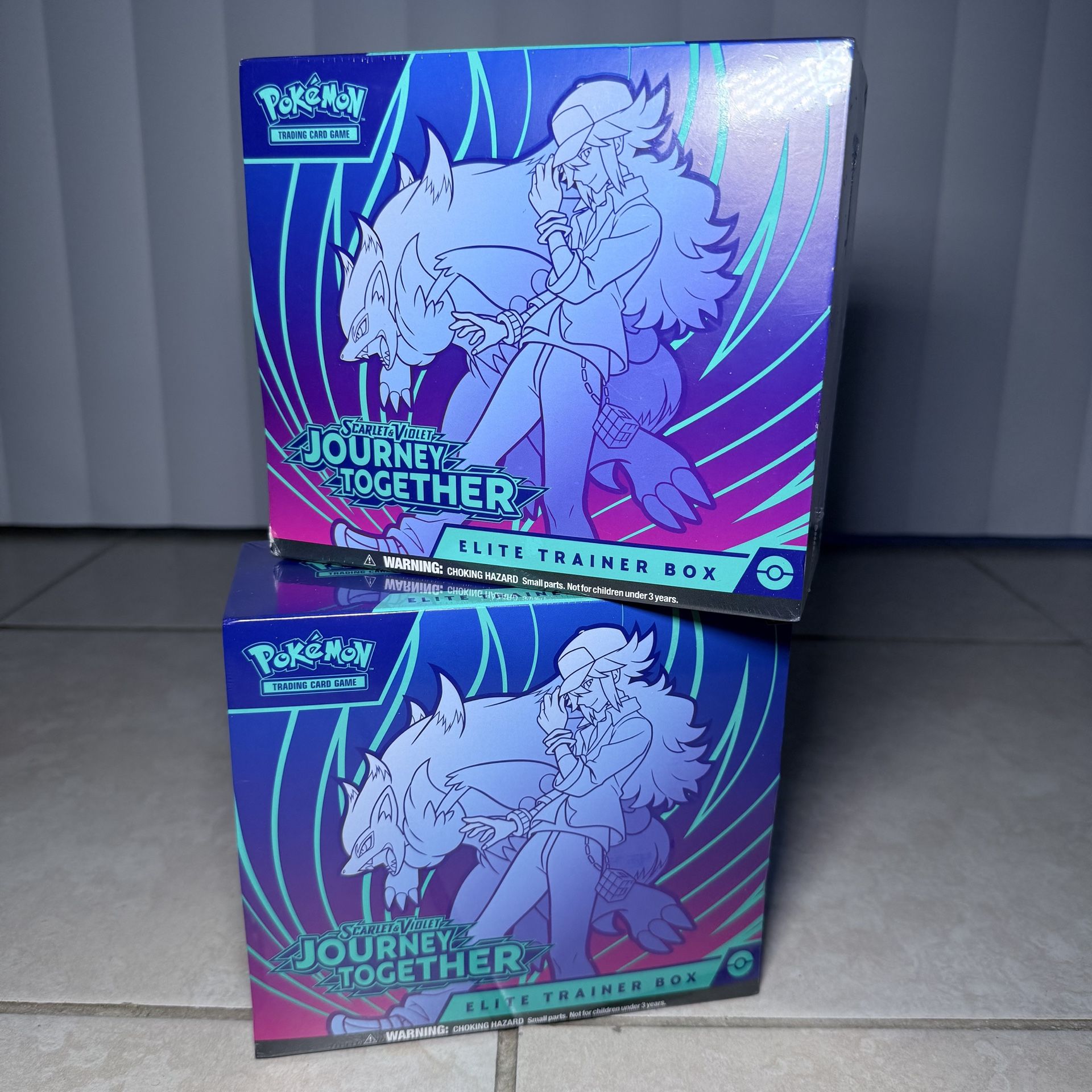 Pokémon TCG: Journey Together Elite Trainer Boxes – $70 Each or $130 for Both 🔥 Brand New / Factory Sealed – From the official Scarlet & Violet: Journey Together Pokémon TCG release 💥 EXTREMELY LIMITED DROP — now sold out in many places! 📦 OPTIONS: • Buy 1 box – $70 • Buy both as a bundle – $130 (save $10) 🎁 Each Elite Trainer Box Includes (as shown on box): • 9 Journey Together booster packs • 1 full-art foil promo card • 65 themed card sleeves • 45 Energy cards • Dice, condition markers & accessories • Collector’s box with divider & code card ✅ 100% Authentic – Stored safely, never opened 📸 Exact boxes shown in image – no surprises ⸻ 📍 Local Pickup – Available 🚗 Local Delivery – Available for a fee 📬 Shipping – Available (buyer covers shipping; tracking included) 🎯 Great for collectors, sealed investors, or fans building their sealed box collection. 💬 Message to claim or ask questions – serious buyers only!