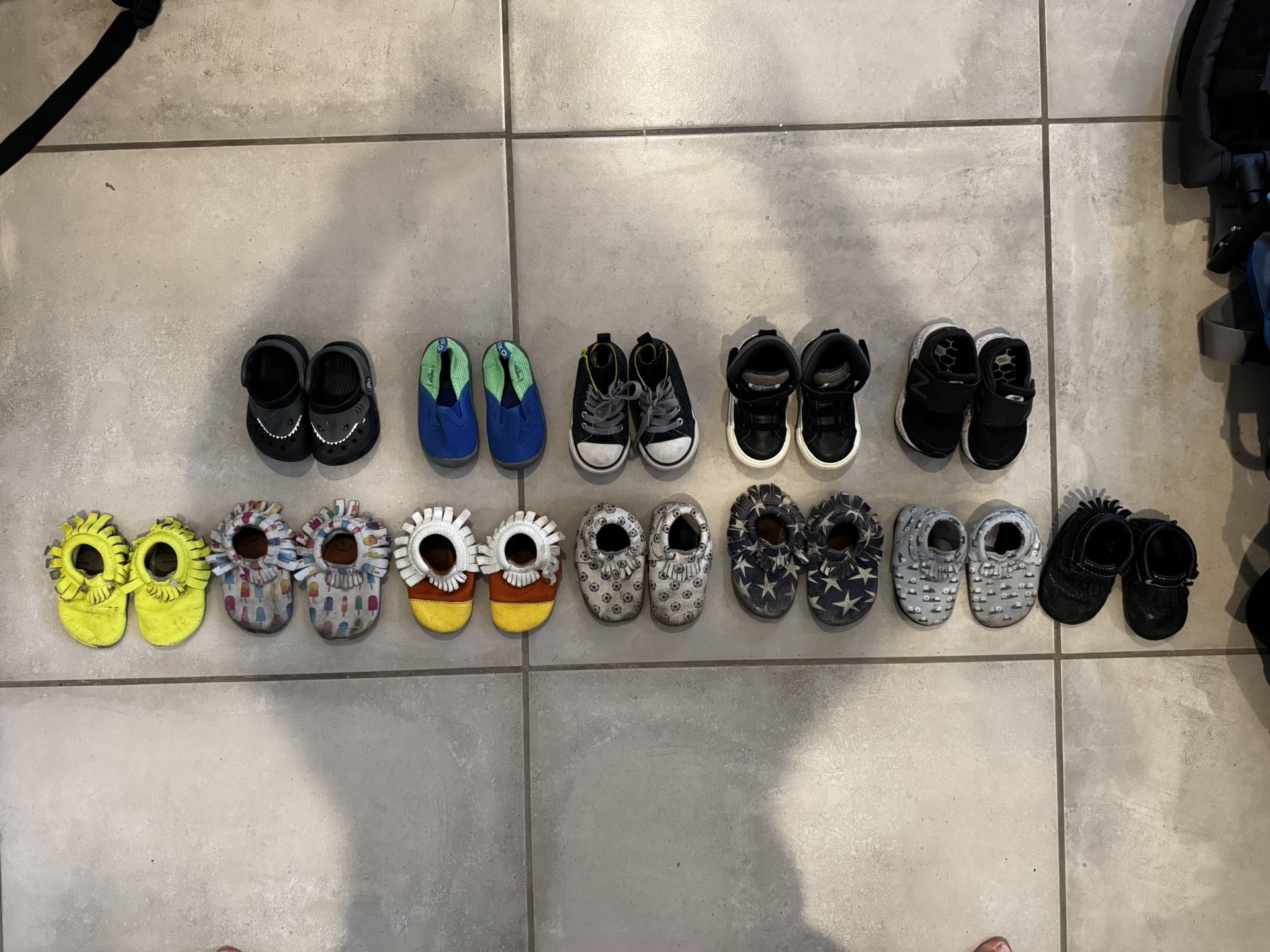 Size 5 kids, children’s, boys (primarily) shoes. Photos taken closer for freshly picked. They are not in amazing condition — they have been worn, by a walker — but they’re still SO cute and they get ALL the compliments! BEST shoes for a kids 2 and under! Crocs, Freshly Picked, Converse, New Balance and water/aqua shoes. PRICE IS NOT FOR ALL. Per shoe!