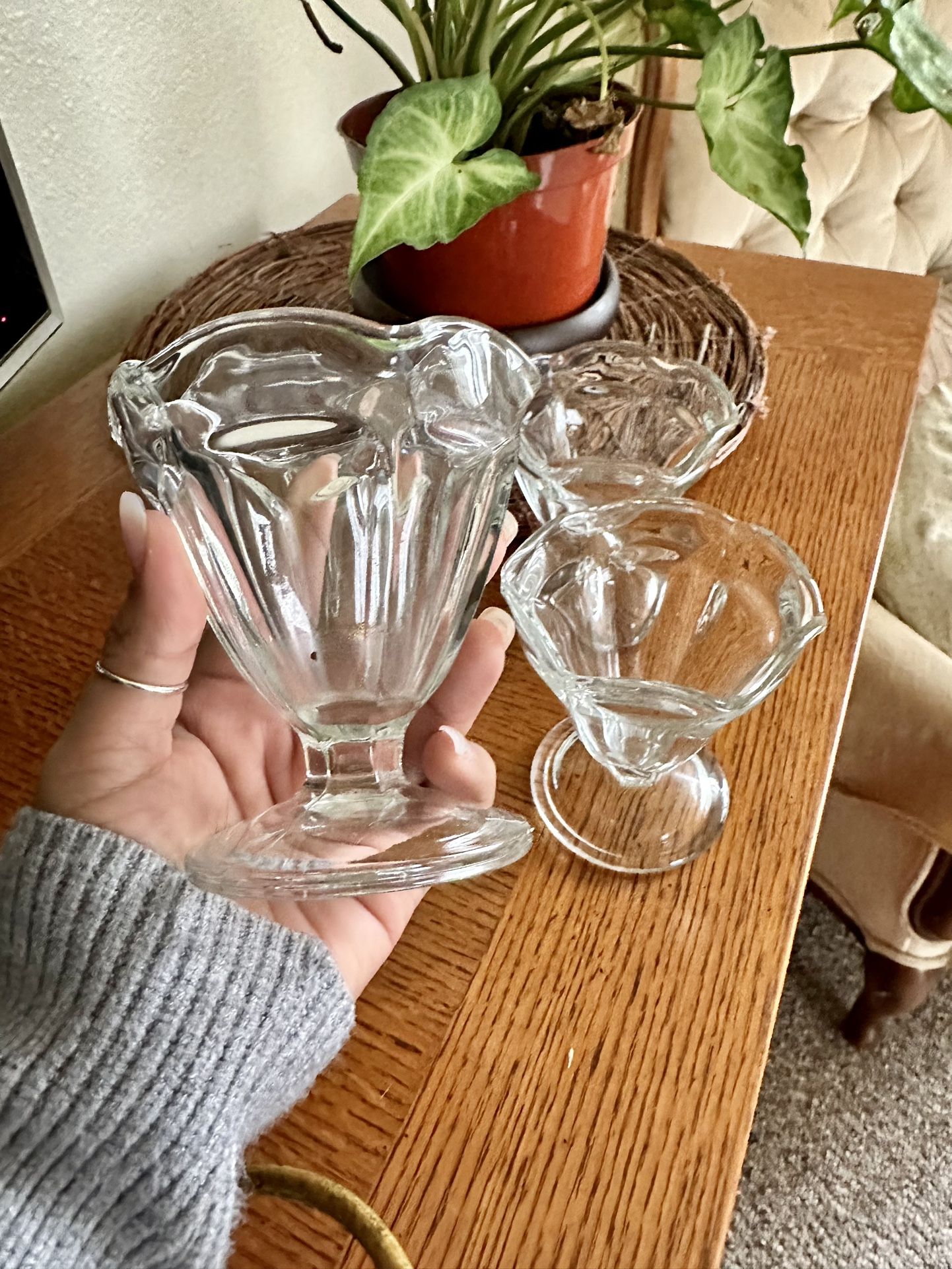 Vintage 4.5 Ounce Sherbert Bowls Set of 4 tulip rim & heavy footed base