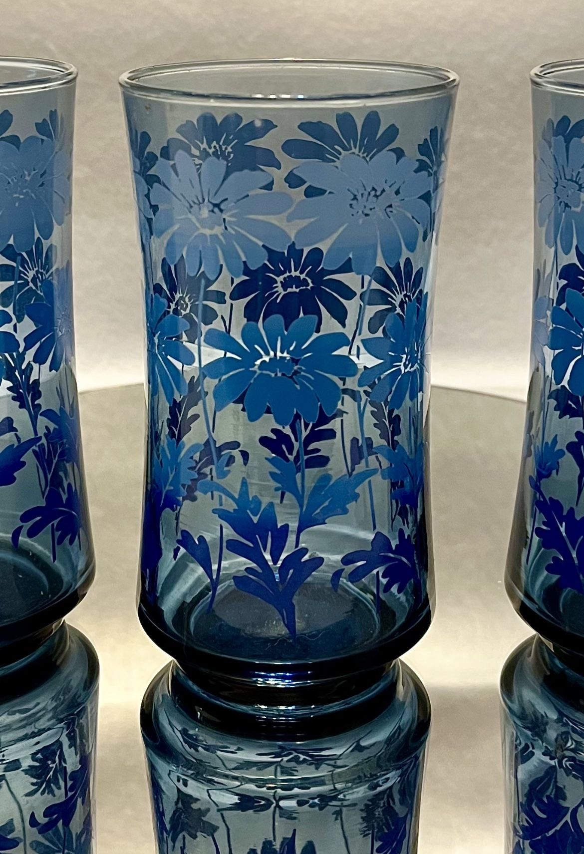 1970’s Retro Blue Daisy Libbey Set Of Six Tumblers