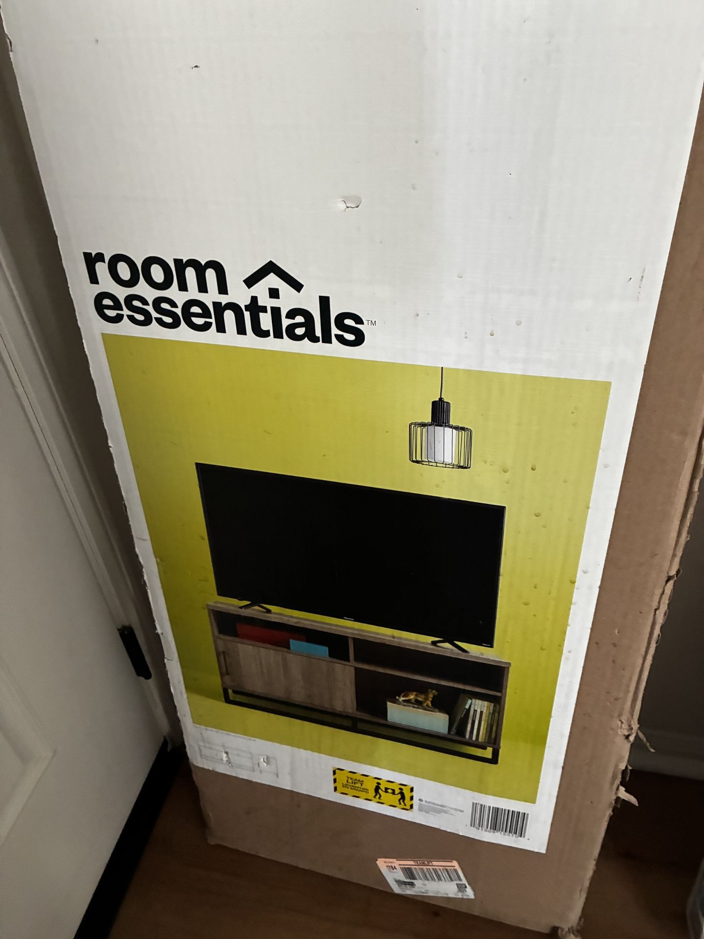 Brand new room essential tv stand brand new I literally just built it in the color grey oak finish size in picture I took asking $100 I paid $130 at target