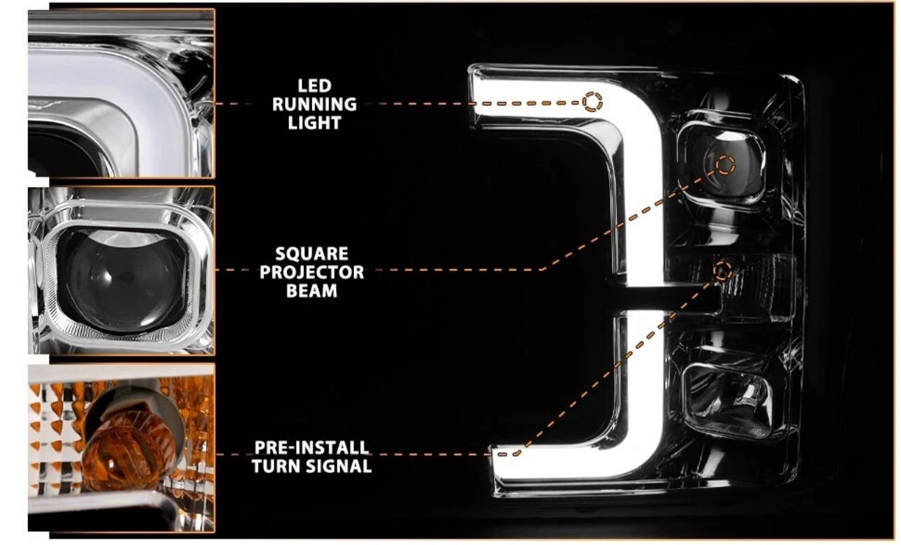 The AmeriLite Chrome Replacement Headlights are designed specifically for 2017-2019 Ford Super Duty F250 and F350 XL XLT models. Made from durable chrome material, these headlights are perfect for enhancing the exterior of your vehicle with a sleek and polished finish. They are designed for placement on the front of your vehicle.
