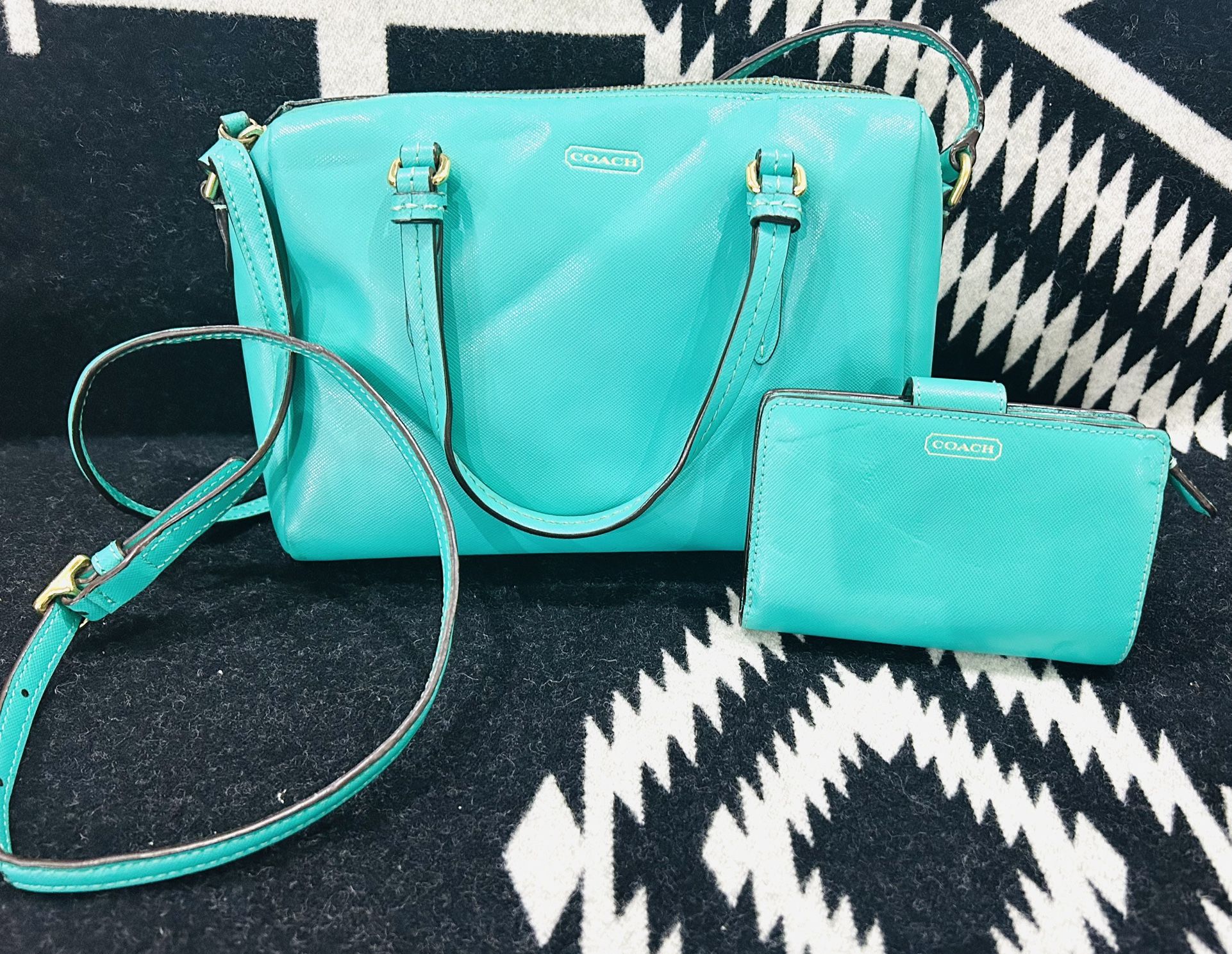GORGEOUS Coach Mini Peyton Bright Green Leather Shoulder Crossbody Bag & Wallet