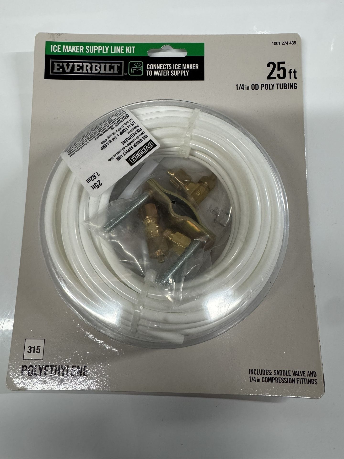 Everbilt Ice Maker Supply Line Kit 25ft (1/4in OD Poly Tubing) CONNECTS ICE MAKER TO WATER SUPPLY INCLUDES: SADDLE VALVE AND 1/4 in COMPRESSION FITTINGS
