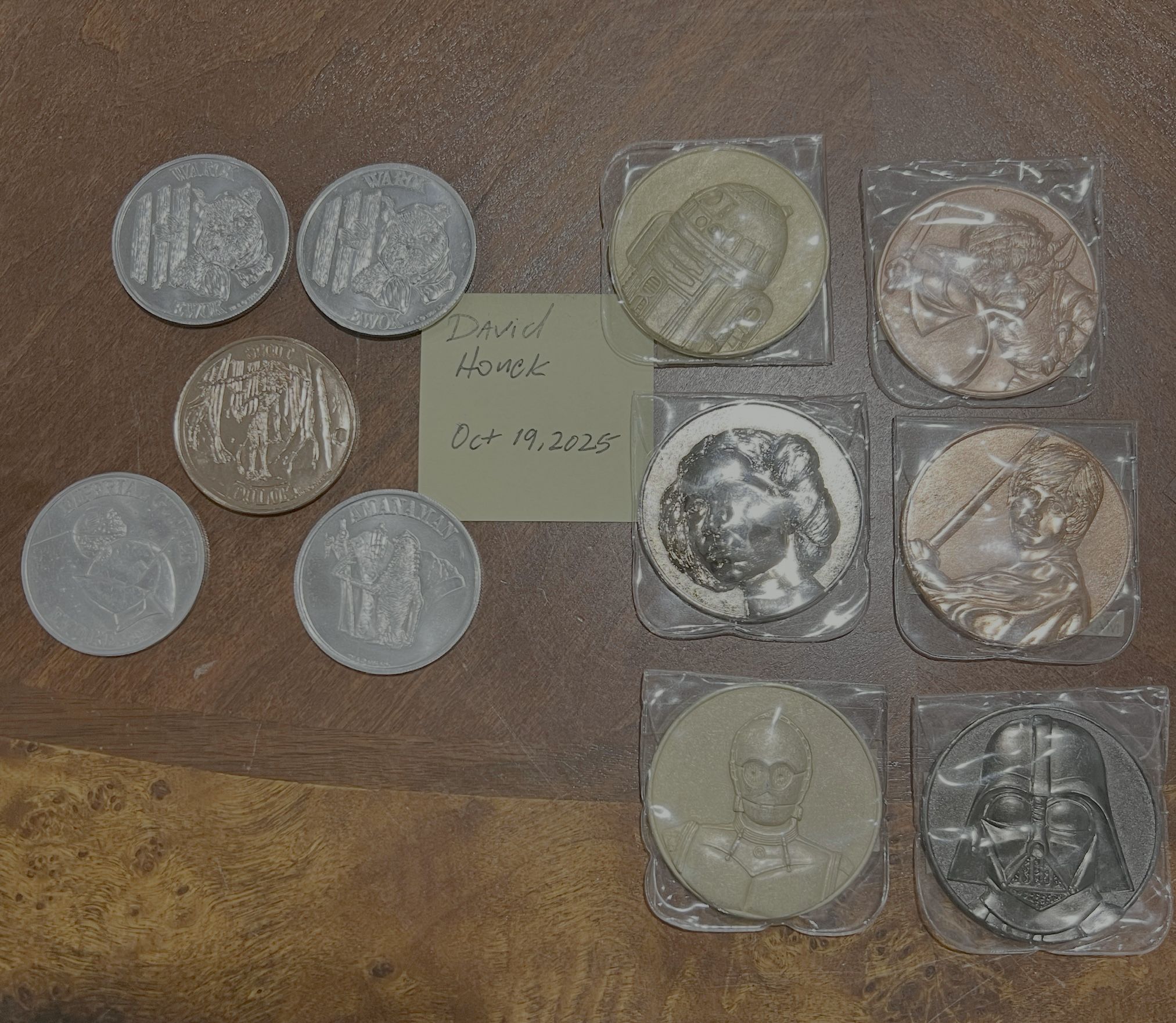 Coin sale: Warok -$25 SOLD Amanaman- $35 Imperial Gunner- SOLD Ewoks cartoon Dulok Scout- $30 2005 California Lottery Promotion Star Wars 2” Coins Complete Set of 6- $20 Located in the city of Maricopa Shipping available: $5 no matter how many you purchase PayPal friends and family or add 4% for Goods and Services