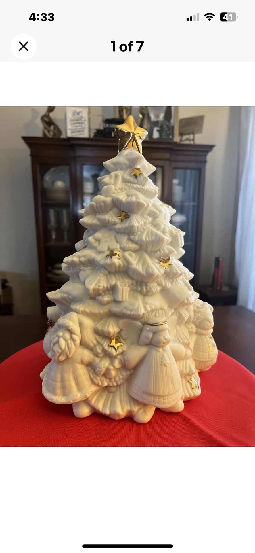 10" Musical Christmas Tree White and Gold with Santa, Mrs. Clause, Angel,Teddy, Snowman featured