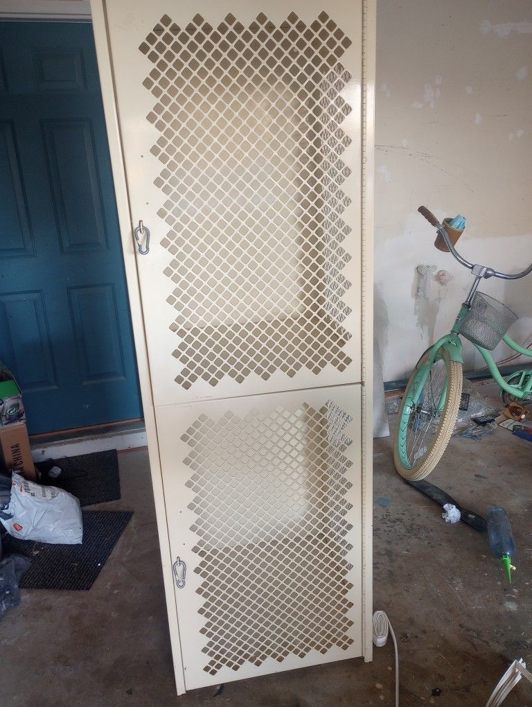 This is a two-tier storage metal bin dimensions-H-74" W-24"by 24" D-23" L-23"