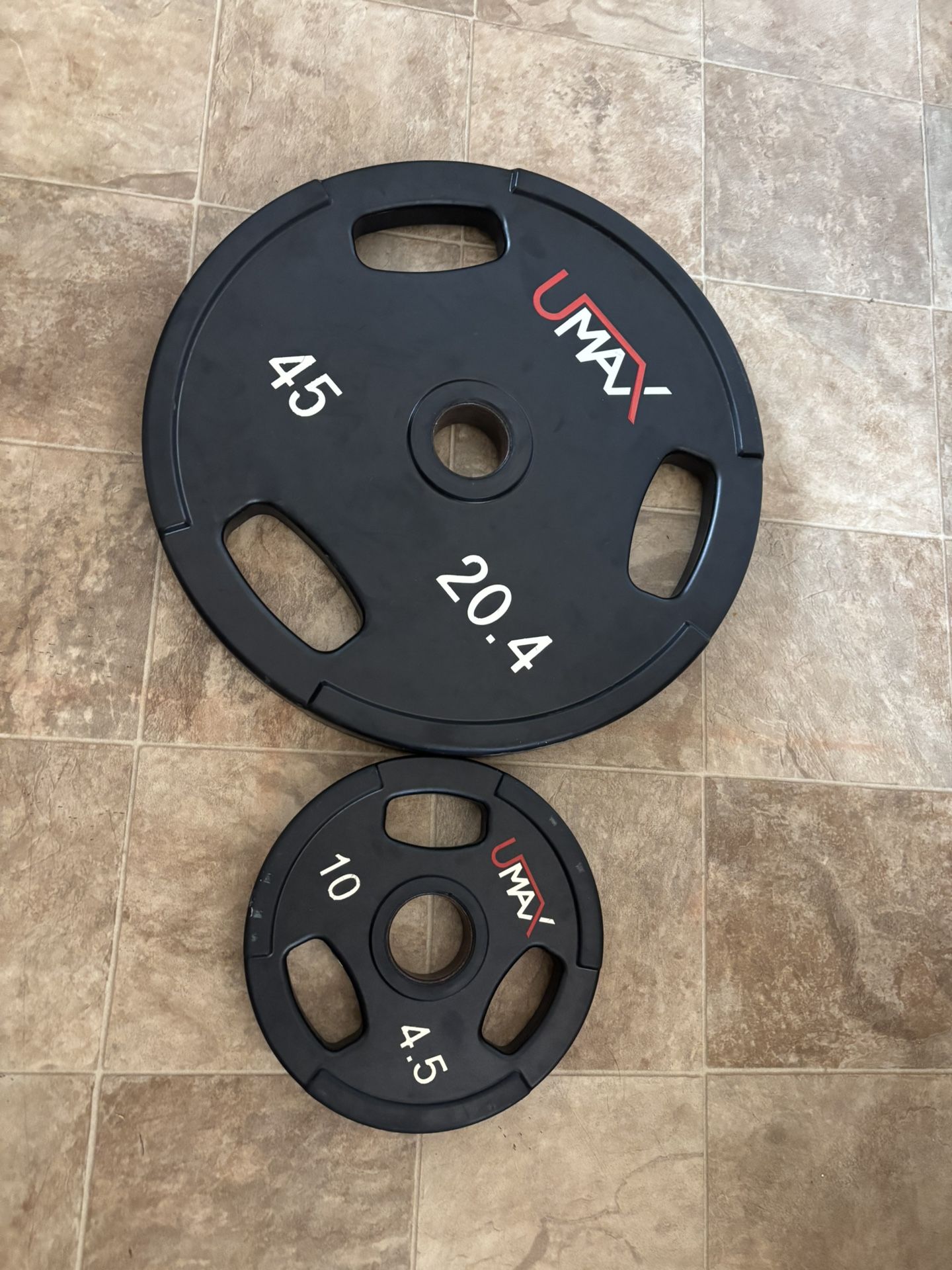 Black Umax bench/squat Gym quality plates.