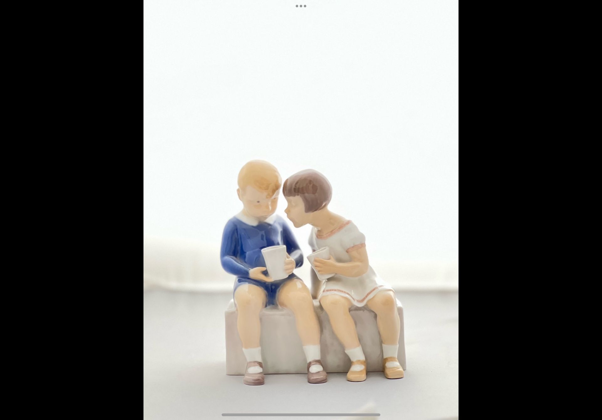 Unfair treatment, children sitting and drinking milk, Bing & Grondahl figurine no. 2175 Brand: Bing & Grondahl Artist: Claire Weiss Item no: B2175 Type: Porcelain (Underglaze) Measurement: H: 15 cm x W: 13 cm