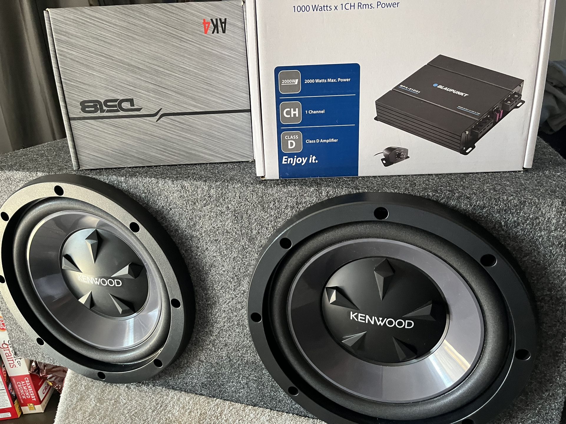 New Kenwood 12 Dual Subwoofer π Package . Includes everything shown in photos. Subwoofer, amplifier and installation kit. Firm price and pickup only.