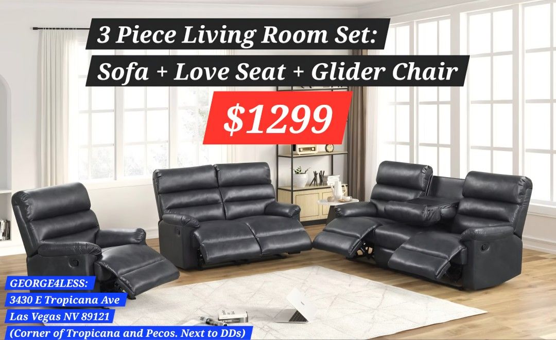 Sofa + Love Seat + Glider Chair : Recliner Set