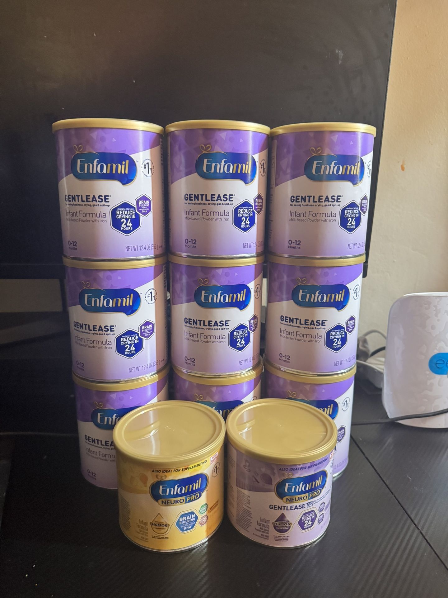 Baby formula 11 cans in total ! 10 purple Enfamil 1 yellow Enfamil