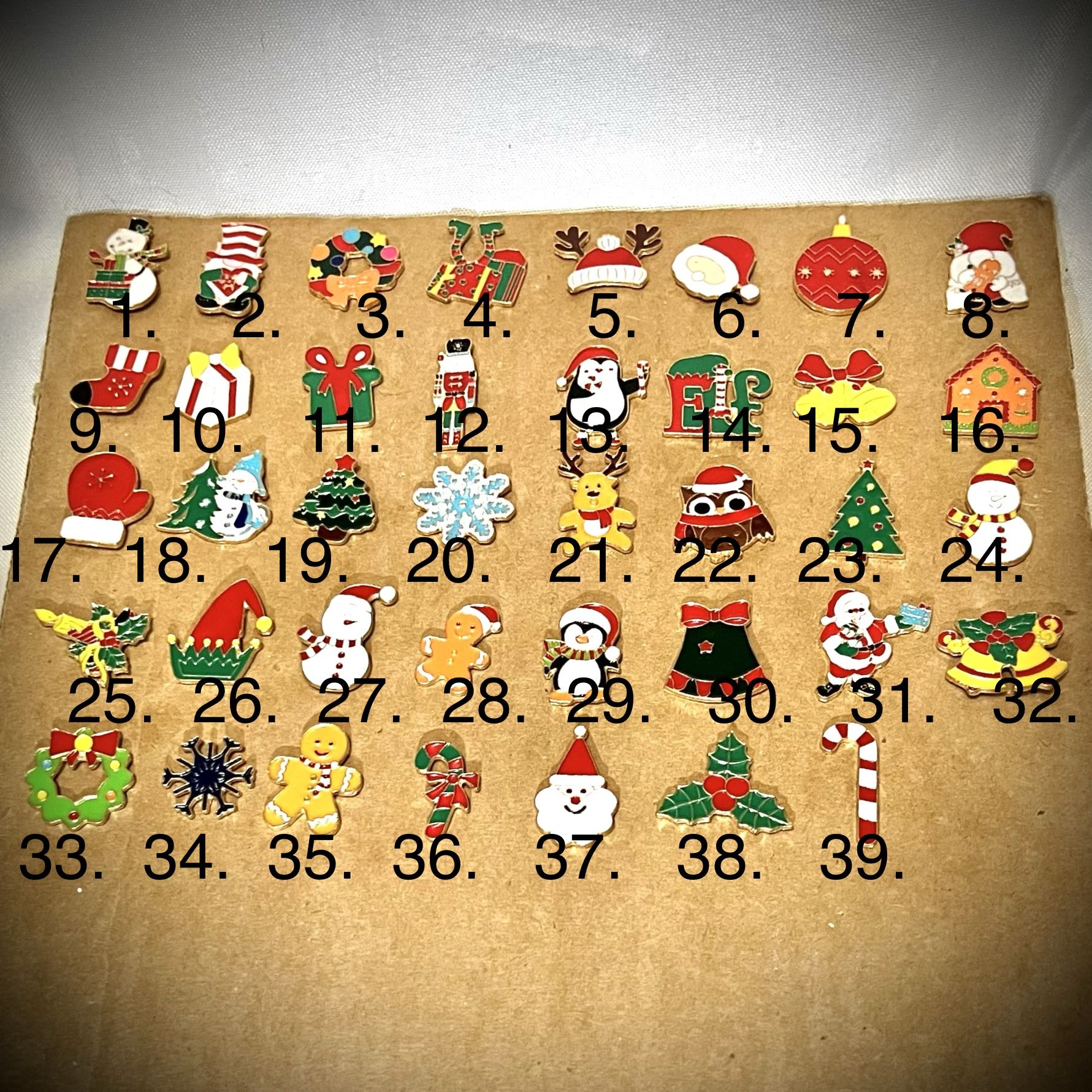 Brand new holiday enamel pins! Mix and match to create your own custom 5-pack for just $15. How to Order: 1. View the numbered photo in this listing. 2. Message me with the 5 numbers you want immediately after checkout. 3. If no selection is sent within 24 hours, I will send 5 random festive designs. Details: • Quantity: 5 Pins • Condition: Brand New • Size: Approx. 1" (see ruler photo for scale) • Backing: Metal butterfly clutch I will update the picture as pins become unavailable.