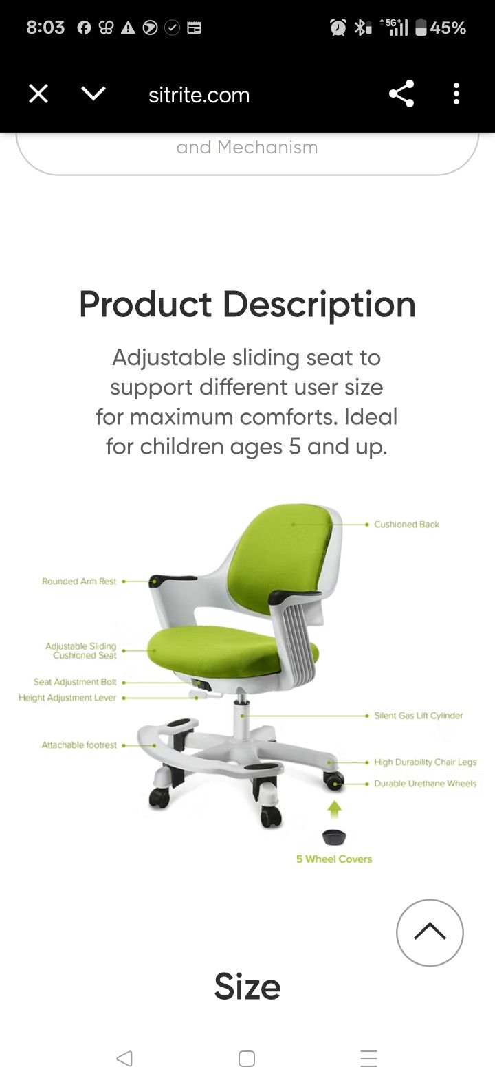 Great condition, leather, black color, grow with your child posture control chair. A few pan pokes on the seat but glued together. No damage otherwise. Retail $250+ .