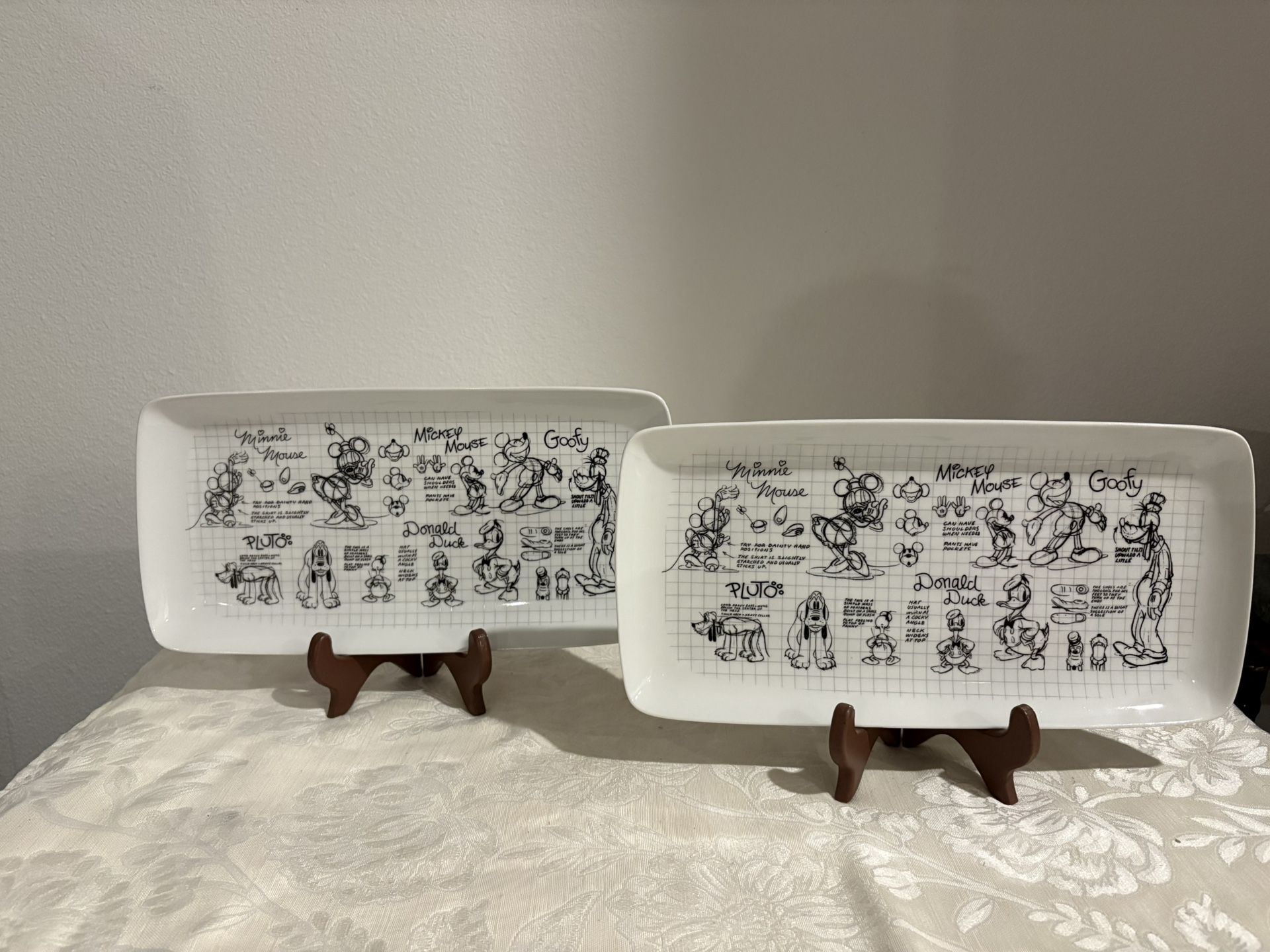 Set Of Two Disney Sketch Mickey Mouse 13" Rectangular Serving Platter Rare Collectible. 90 Years Magic