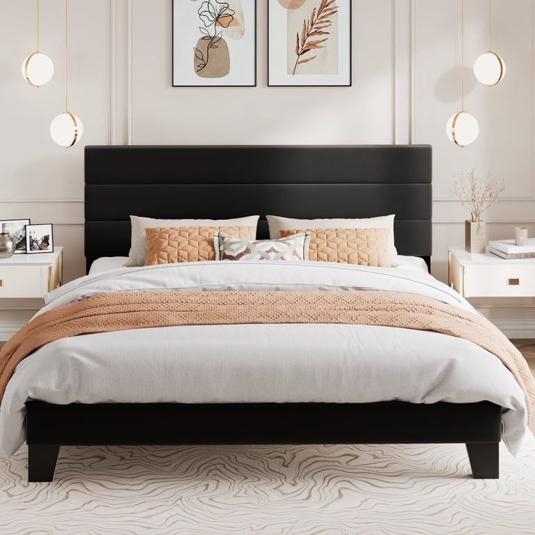 No Box Spring Required: This velvet platform bed frame features a slatted base support system designed to hold your mattress securely without needing a box spring. The evenly spaced wooden slats provide optimal weight distribution, ensuring long-lasting comfort and reducing mattress wear. Effortless Assembly: This bed frame assembles in under 40 minutes with a user-friendly, tool-free design. Pre-drilled holes, numbered parts, and clear instructions simplify the process. The lightweight yet durable components snap together seamlessly, minimizing frustration. Noise-Free Performance: Engineered with reinforced joints and EVA foam, this bed eliminates squeaks and creaks, even during movement. The velvet fabric and tightly secured components dampen sound, ensuring undisturbed sleep. Sturdy, Durable Build: Crafted from robust steel, the frame supports up to 800 lbs. The reinforced center legs and rigid slats prevent sagging, while the velvet-wrapped headboard adds stability. Its rigid structure stays intact over time, resisting warping or wobbling. Luxurious Velvet Headboard: The upholstered headboard offers velvet, soft-touch comfort and serves as a stylish focal point. It's padded design lets you lean back comfortably. Stain-resistant velvet fabric ensures easy maintenance, blending practicality with elegance. 3568A-6AW