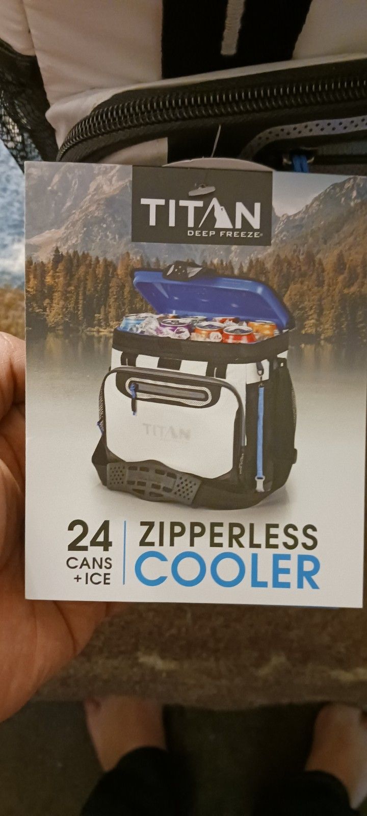 Brand new still with tags drink cooler. Brand new, never used. Multiple compartments for storage and insulated for use with ice or ice packs.